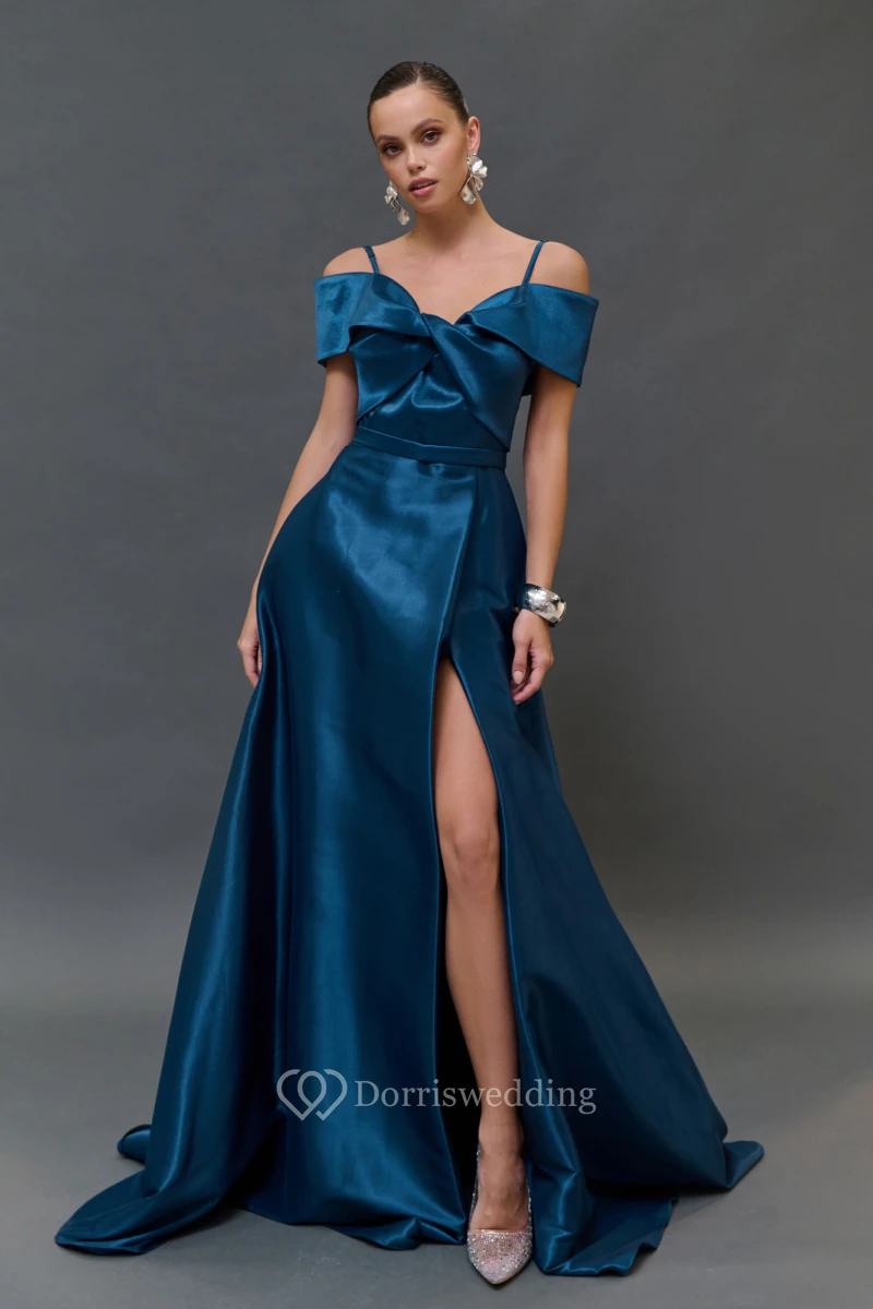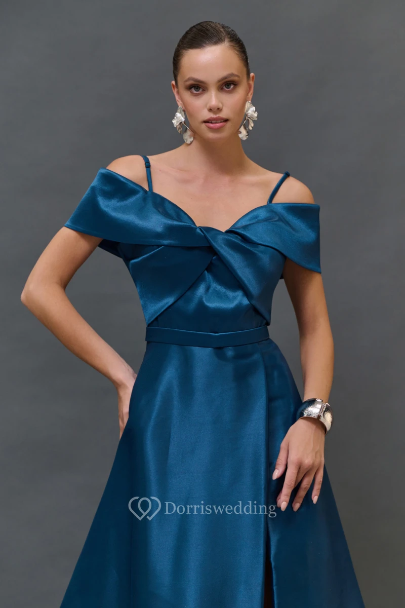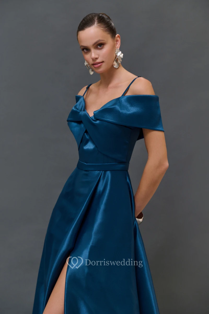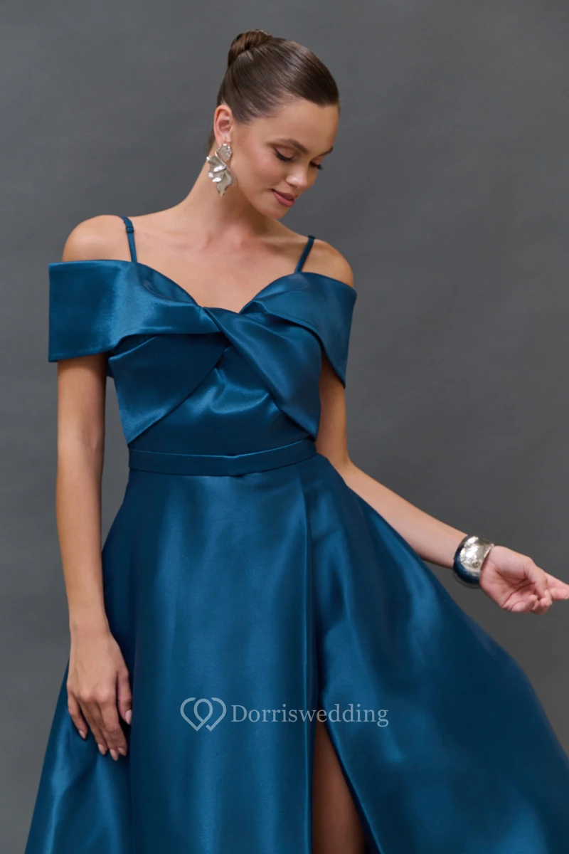 Spaghetti Satin A-line Split Criss-cross Dress