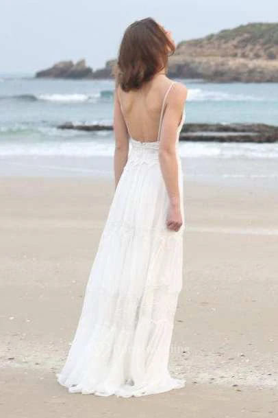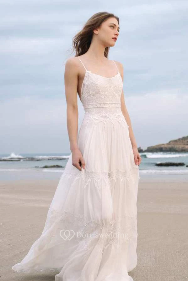Spaghetti Sleeveless Chiffon Beach Boho Wedding Dress