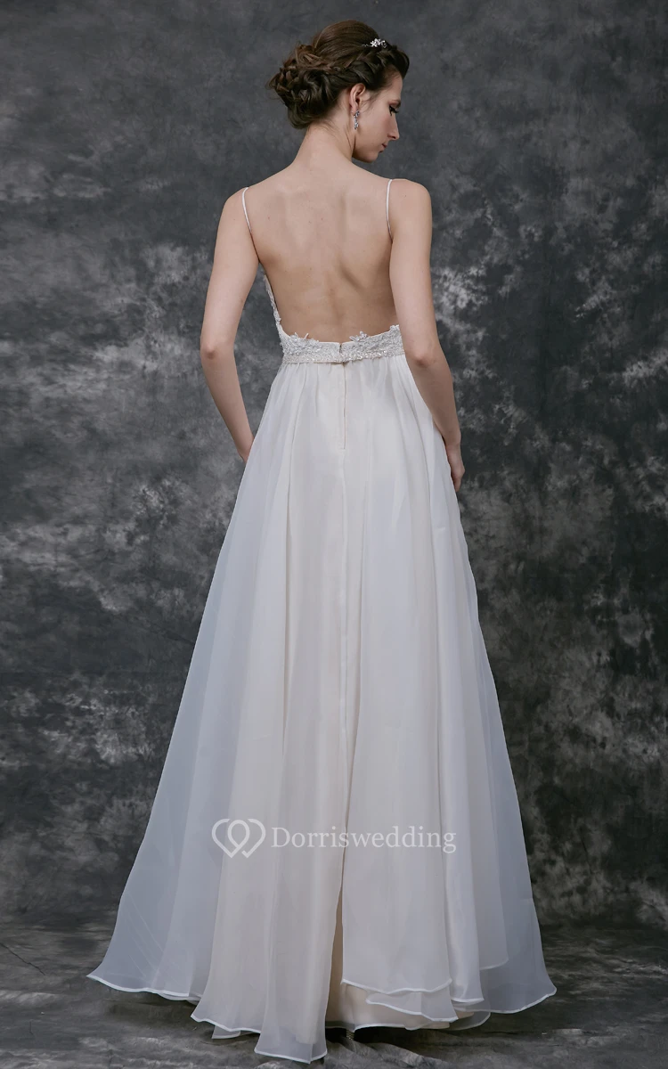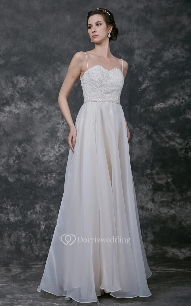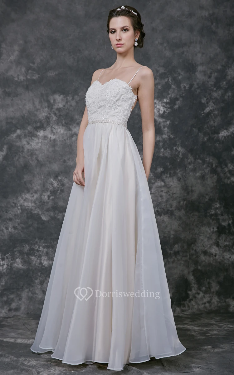 Spaghetti Strap A-line Organza Gown With Lace Bodice