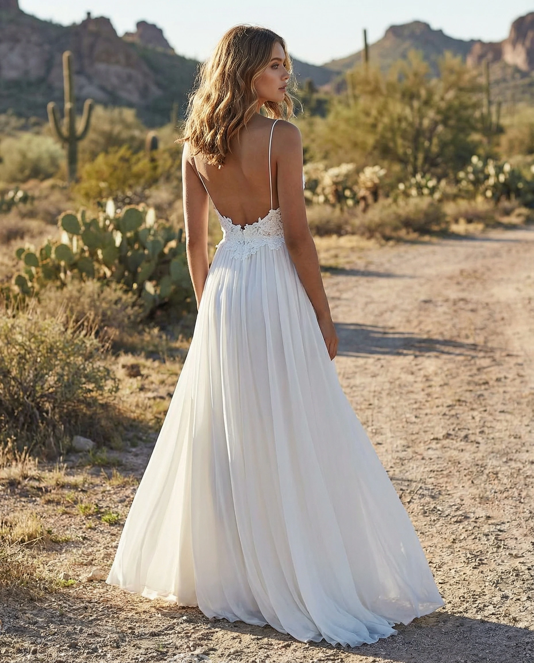 Spaghetti Strap Chiffon Wedding Dress