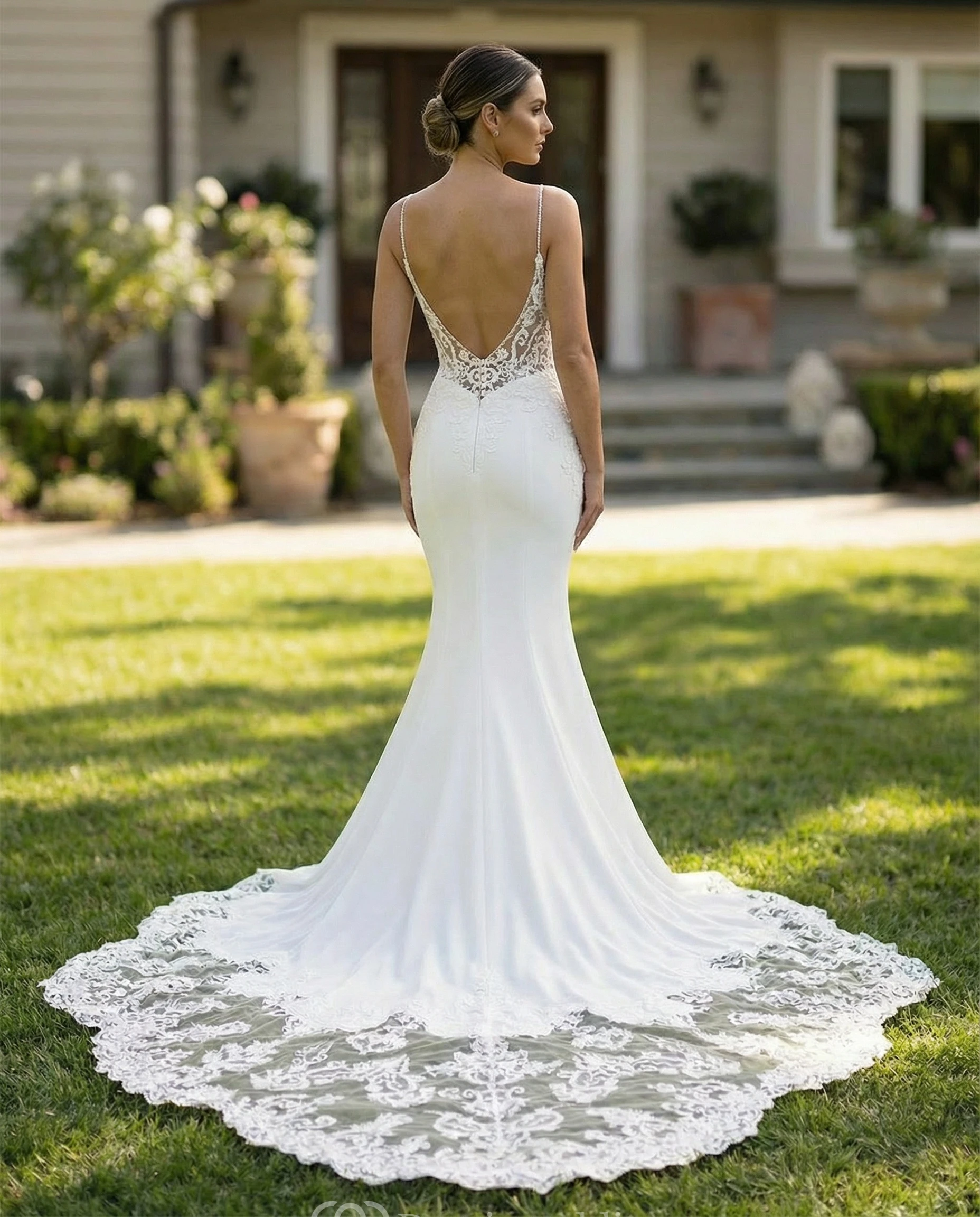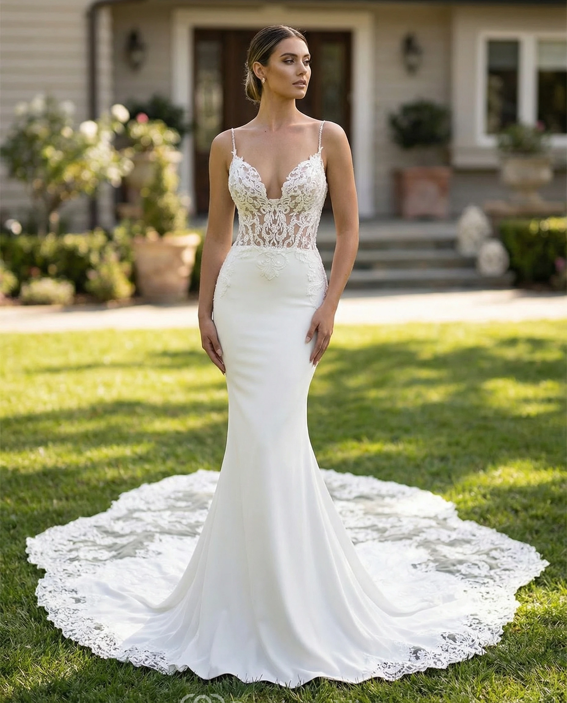 Spaghetti Strap Deep V Lace Mermaid Bridal Gown