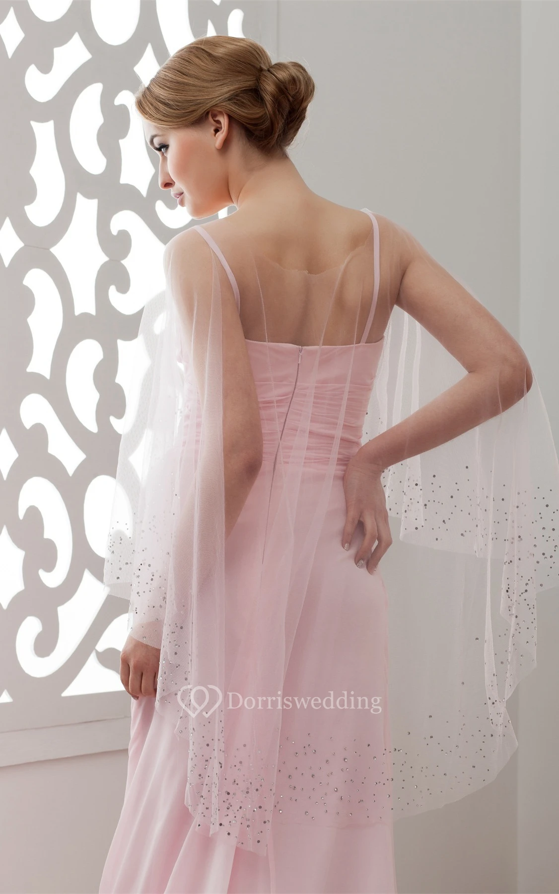 Spaghetti-Strap Long Chiffon Brush Train and Dress With Pleats