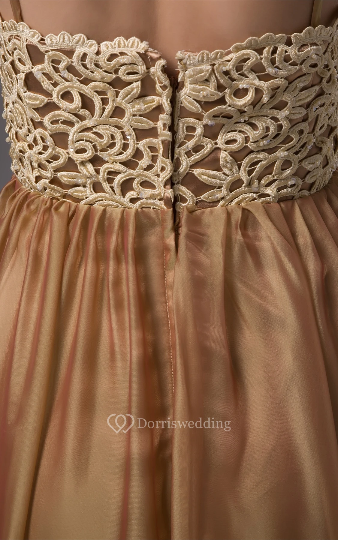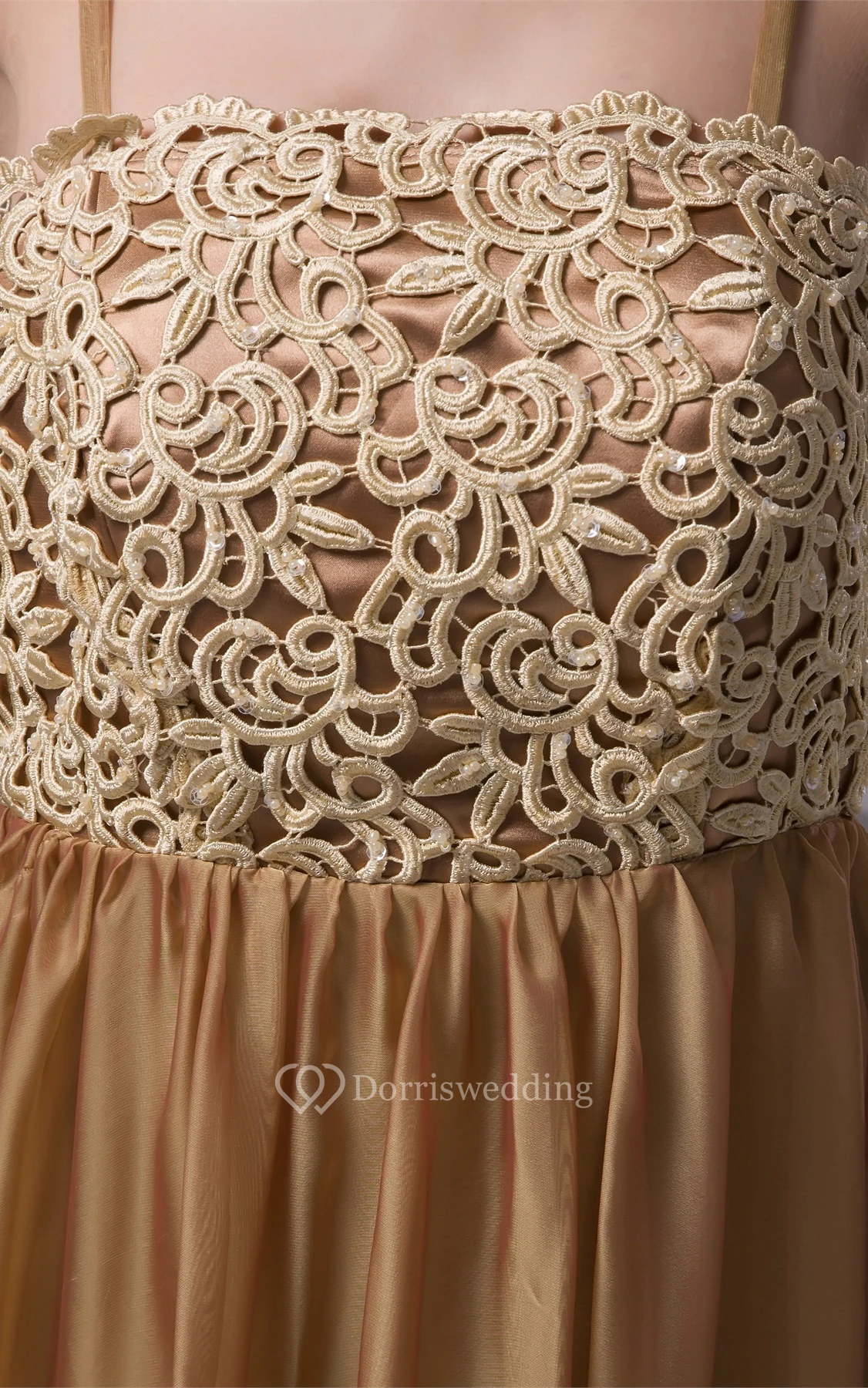 Spaghetti-Strap Maxi Lace and Gown With Pleats