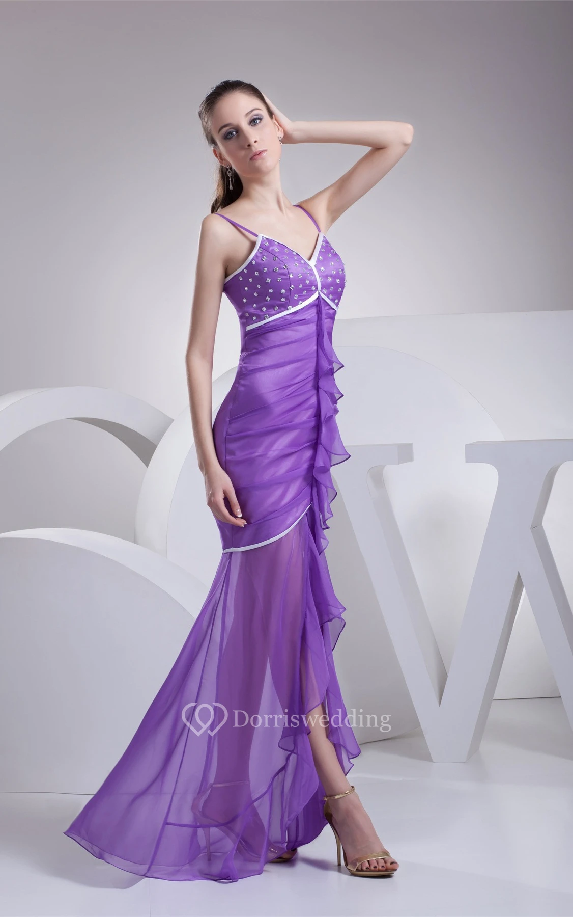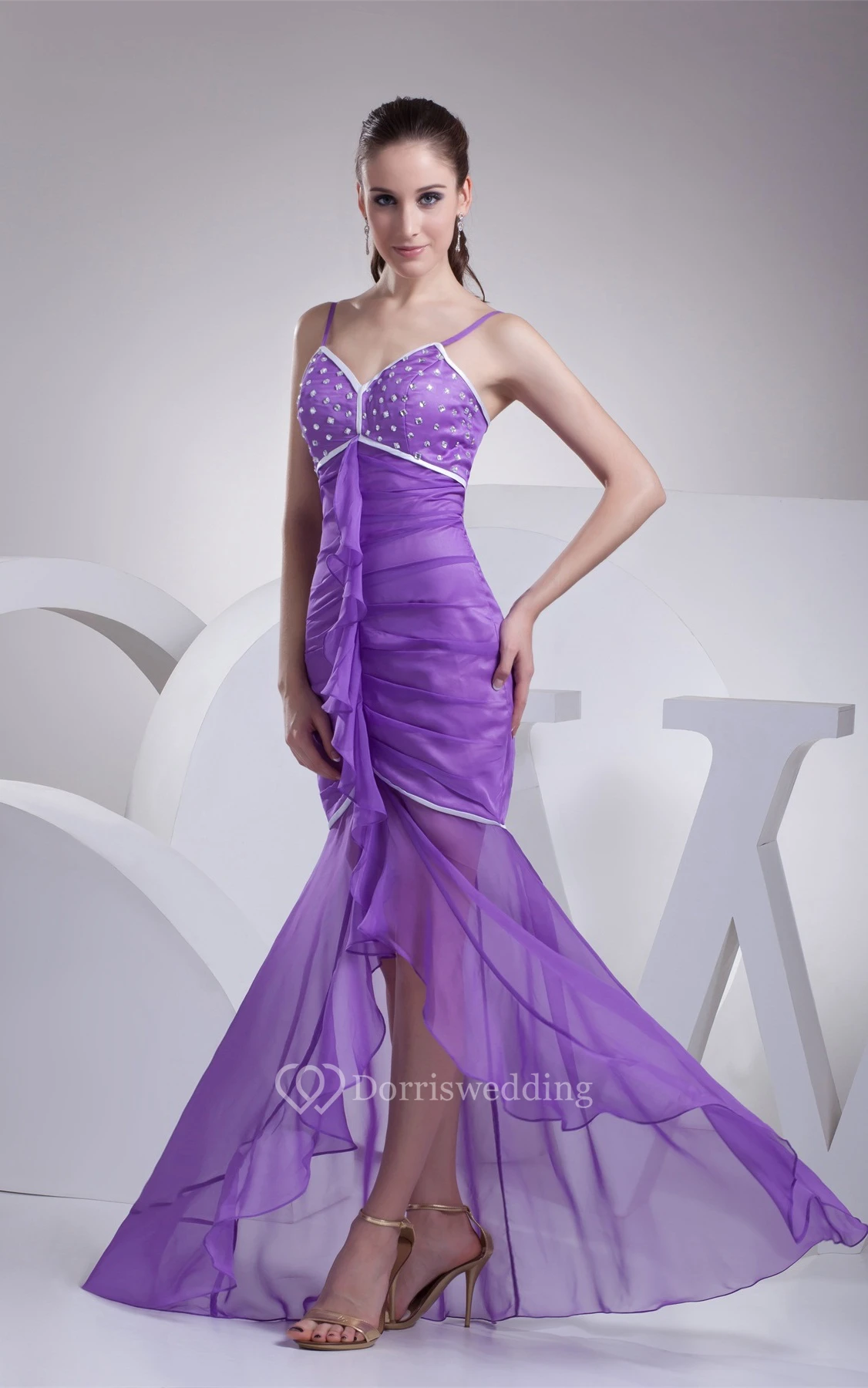 Spaghetti-Strap Mermaid High-Low Draping and Dress With Beading