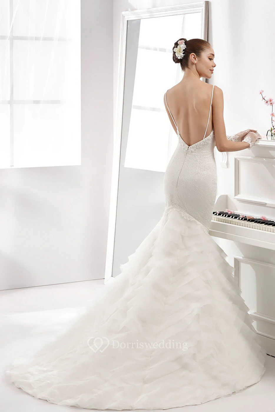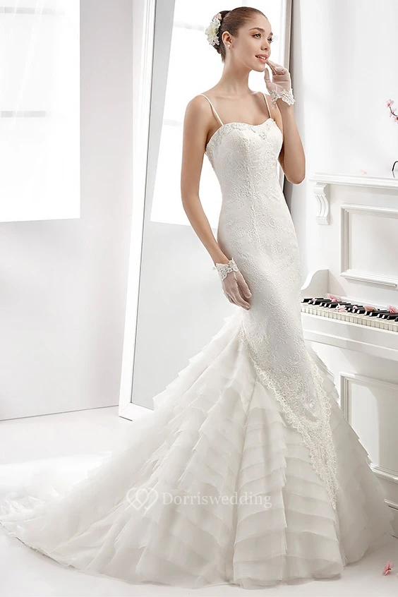 Spaghetti-Strap Sheath Mermaid Gown With Tiers Train And Backless Design