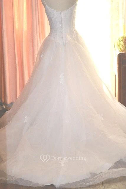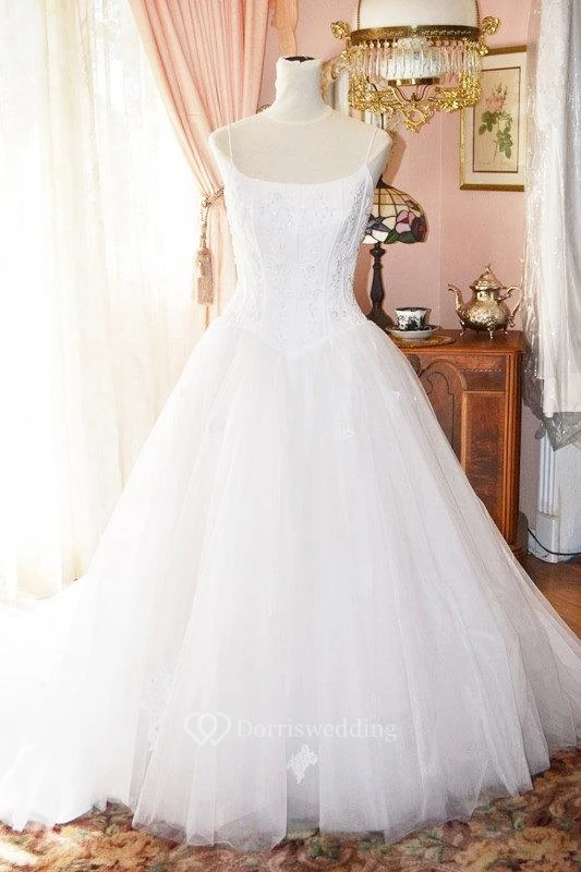 Spaghetti Straps A-Line Wedding Gown With Beaded Lace Bodice