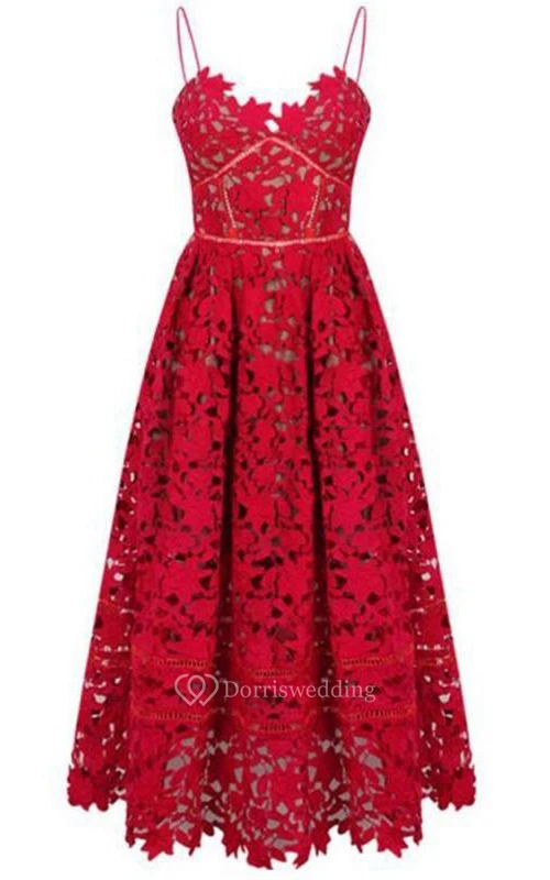 Spaghetti Straps Ankle-Length Prom Dress