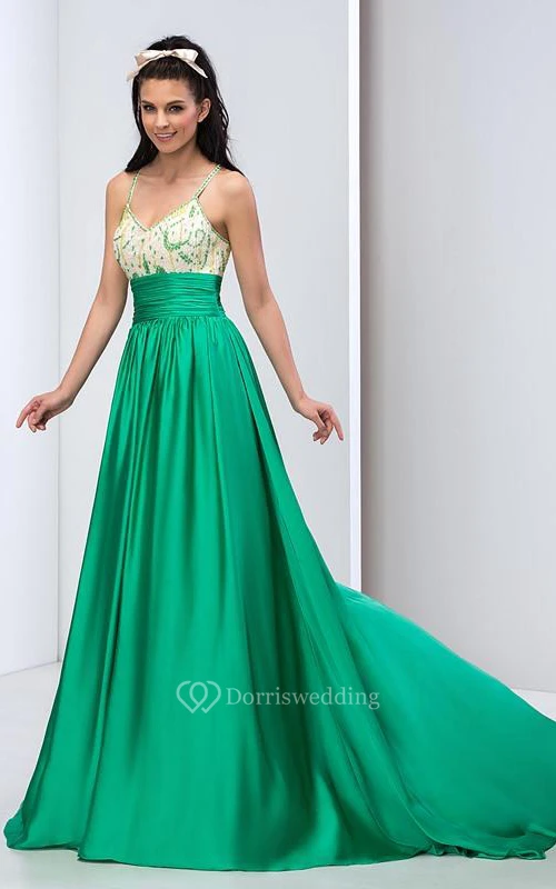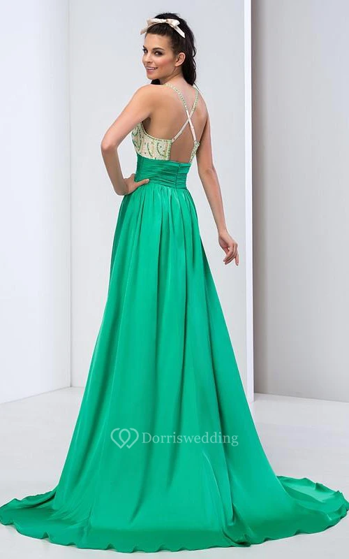 Spaghetti Straps Criss-cross Beading Long Prom Dress
