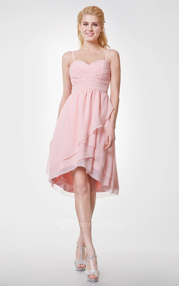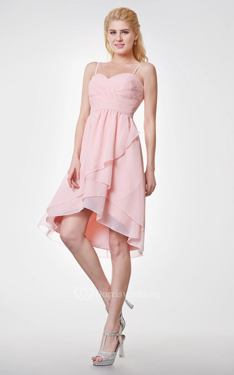 Spaghetti Straps Crisscross Bodice Empire Chiffon High Low Dress