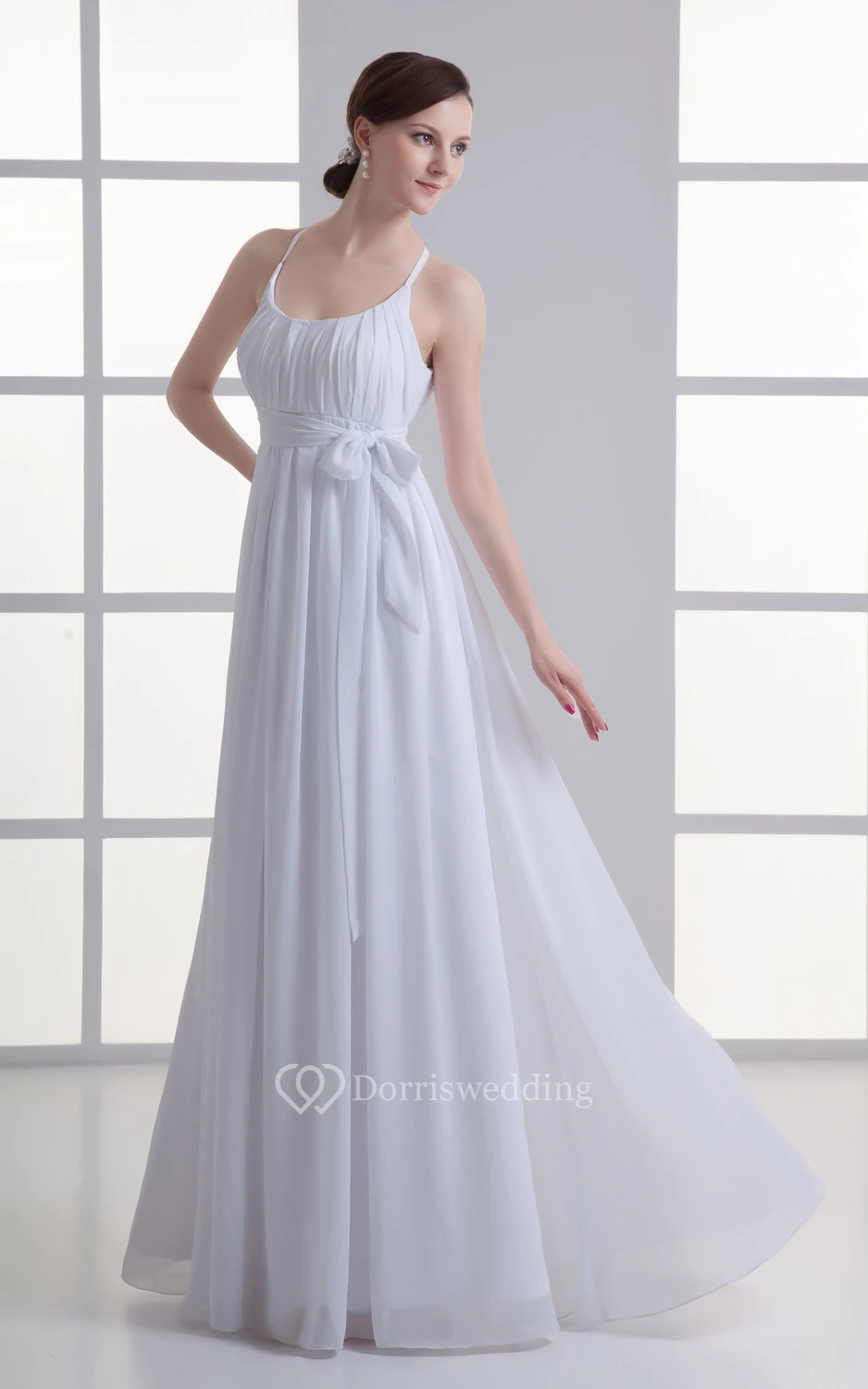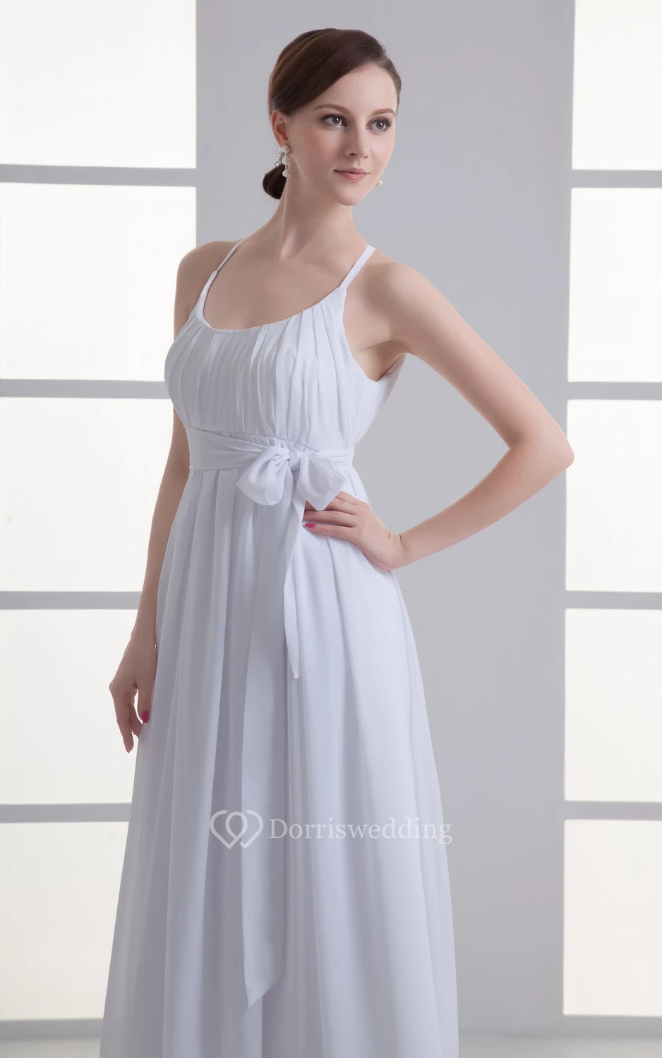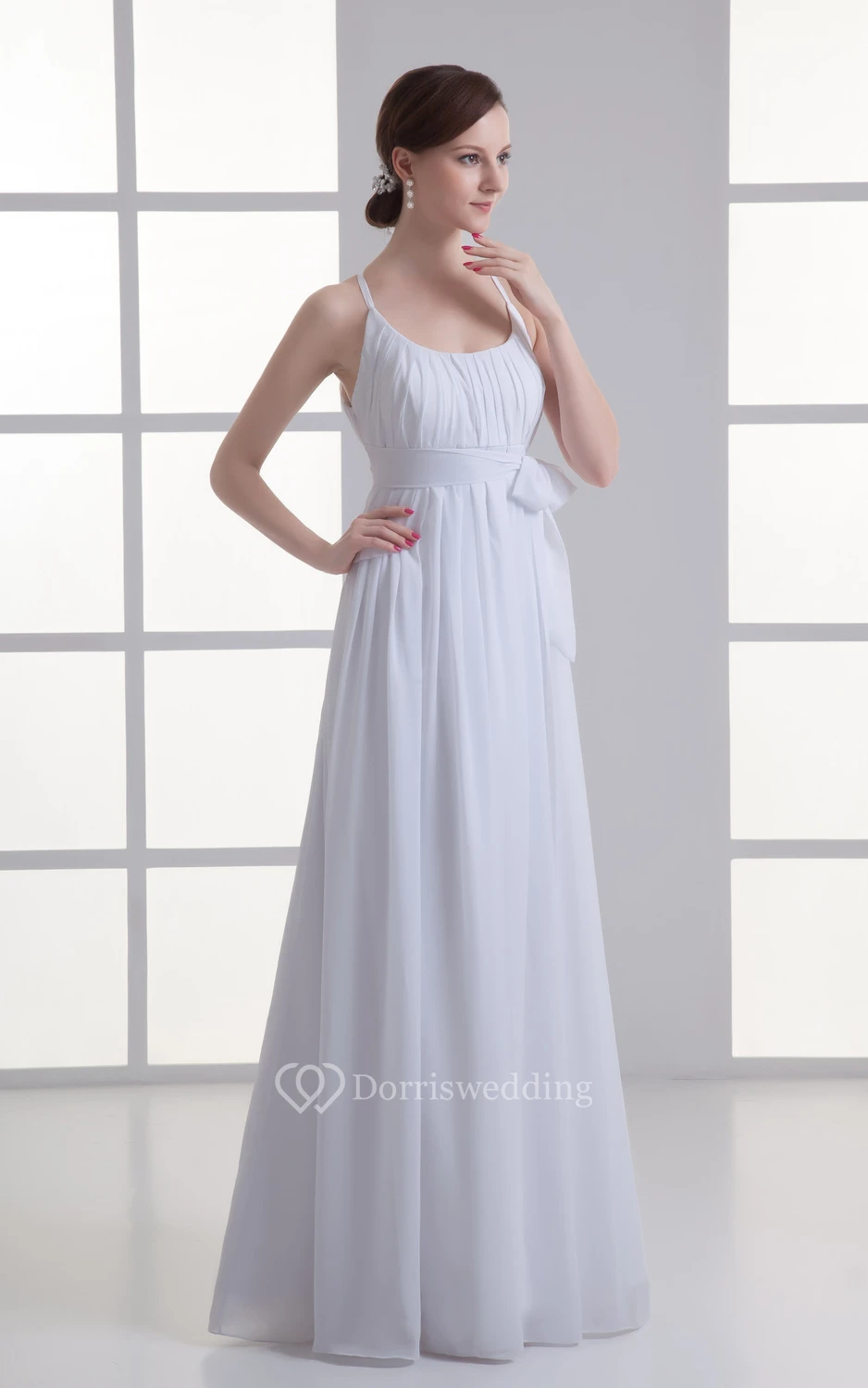 Spaghetti Straps Embroideries Dress With Chiffon Pleating