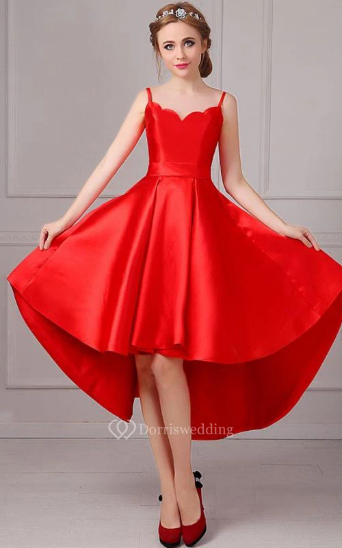 Spaghetti Straps Lace-Up Asymmetrical Prom Dress