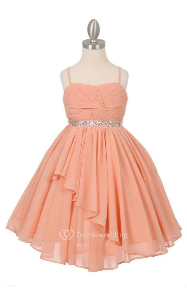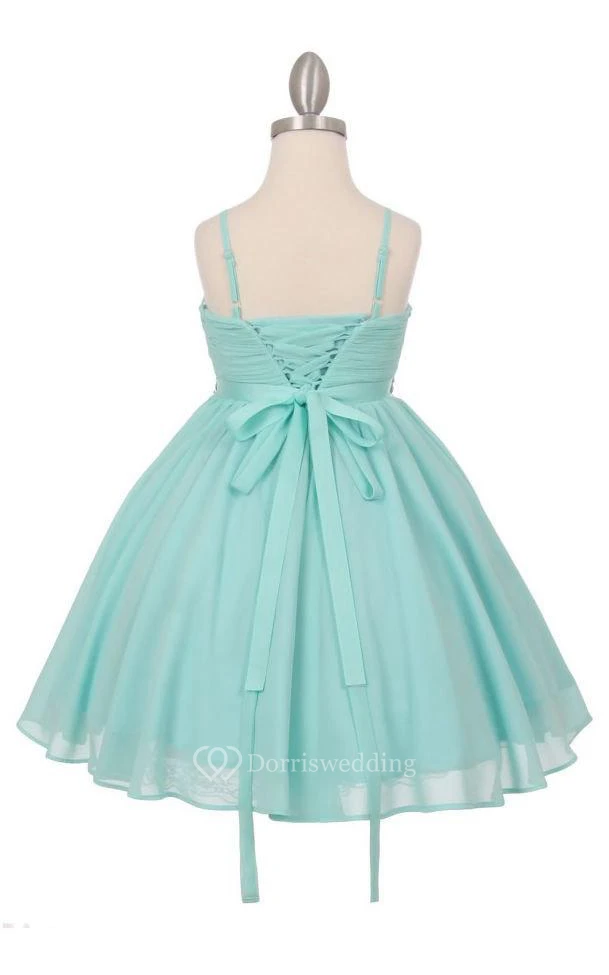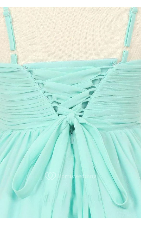 Spaghetti Straps Pleated A-line Chiffon Long Dress With Beadings and Lace Up
