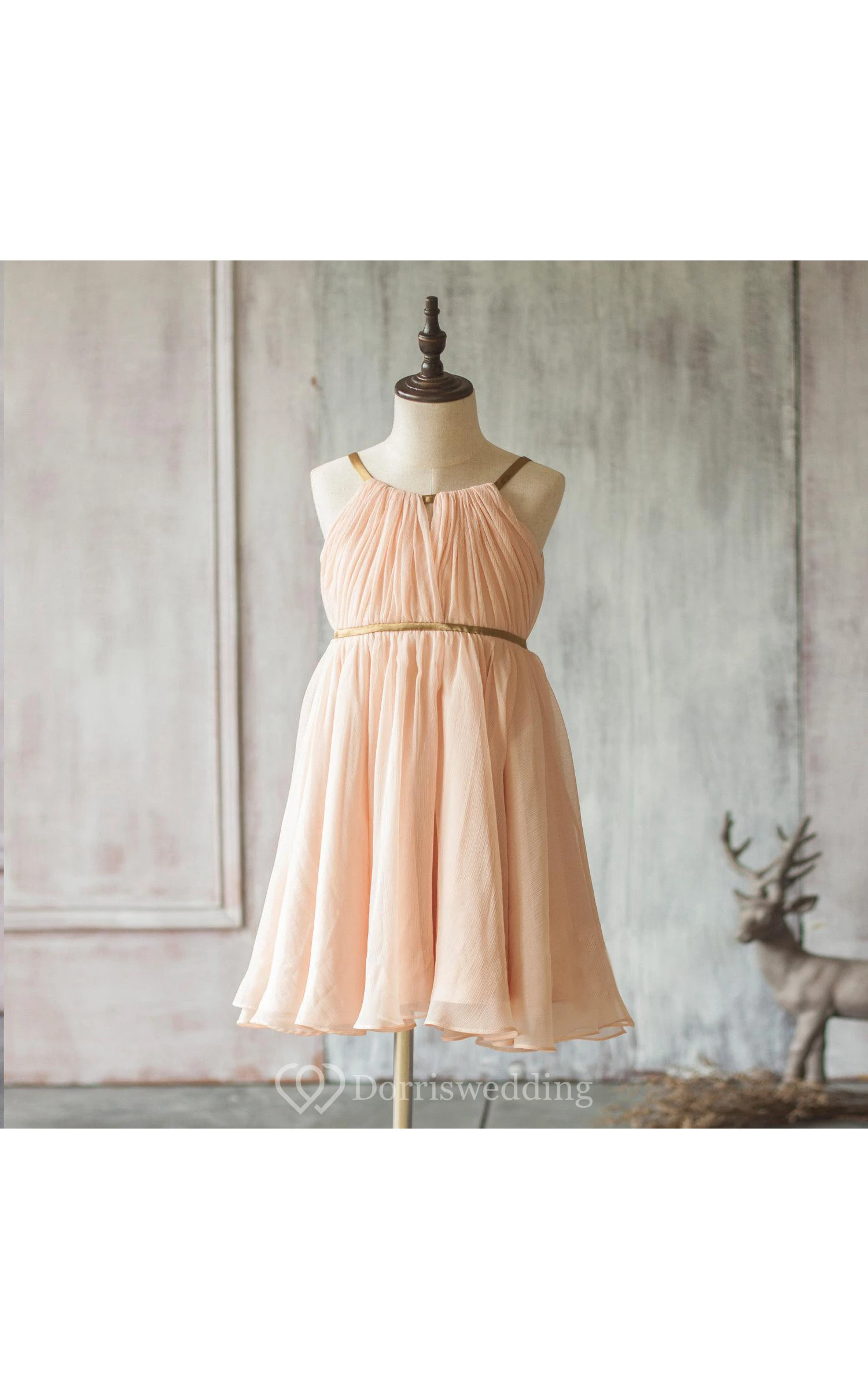 Spaghetti Straps Pleated A-line Chiffon Short Dress With V-back
