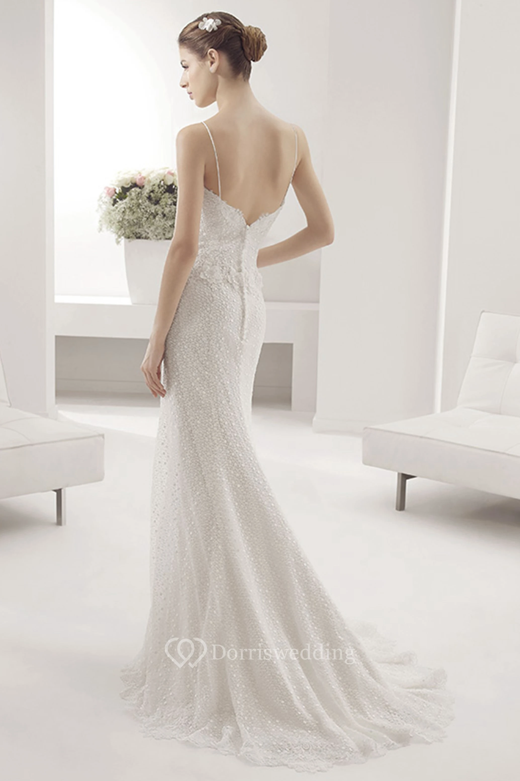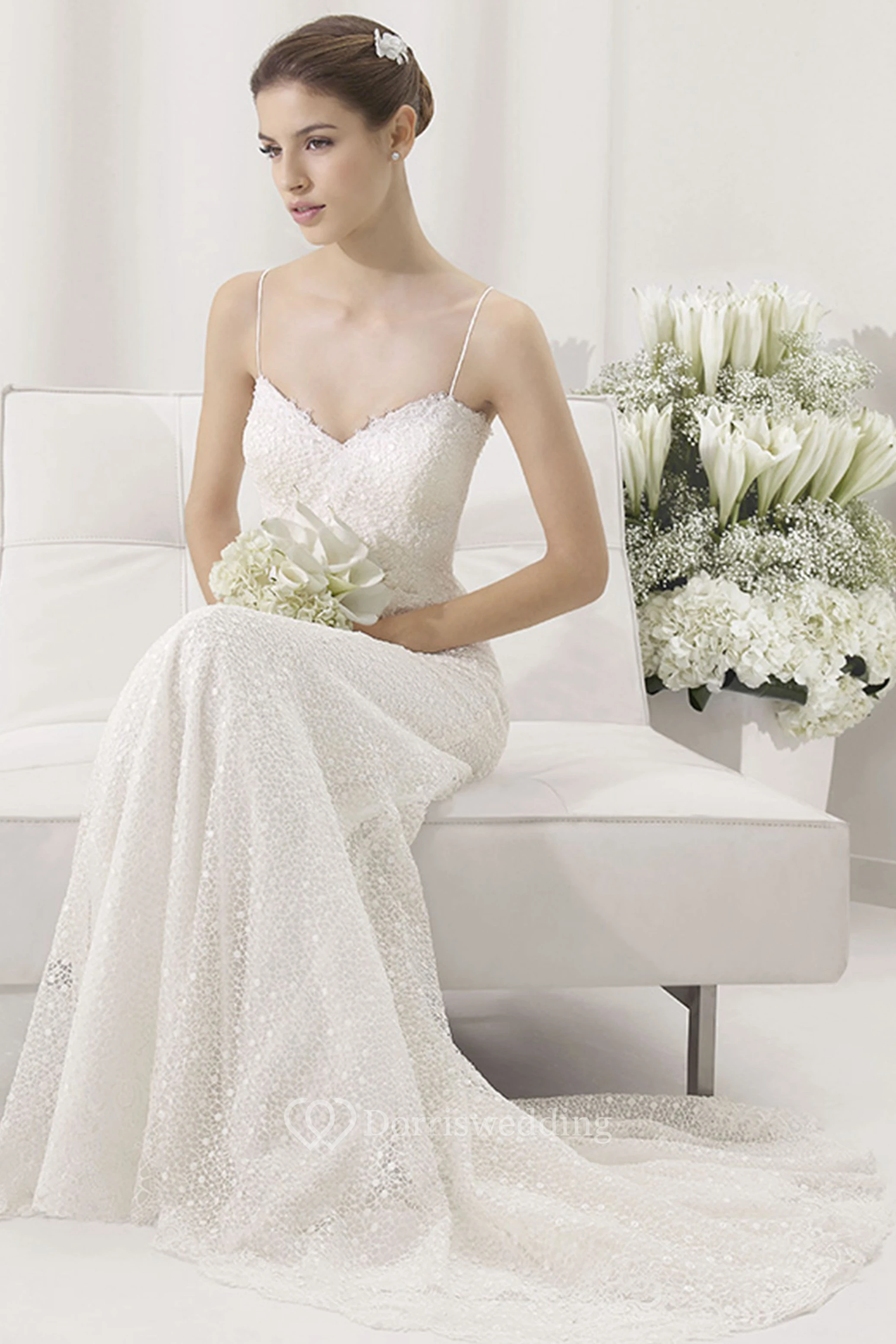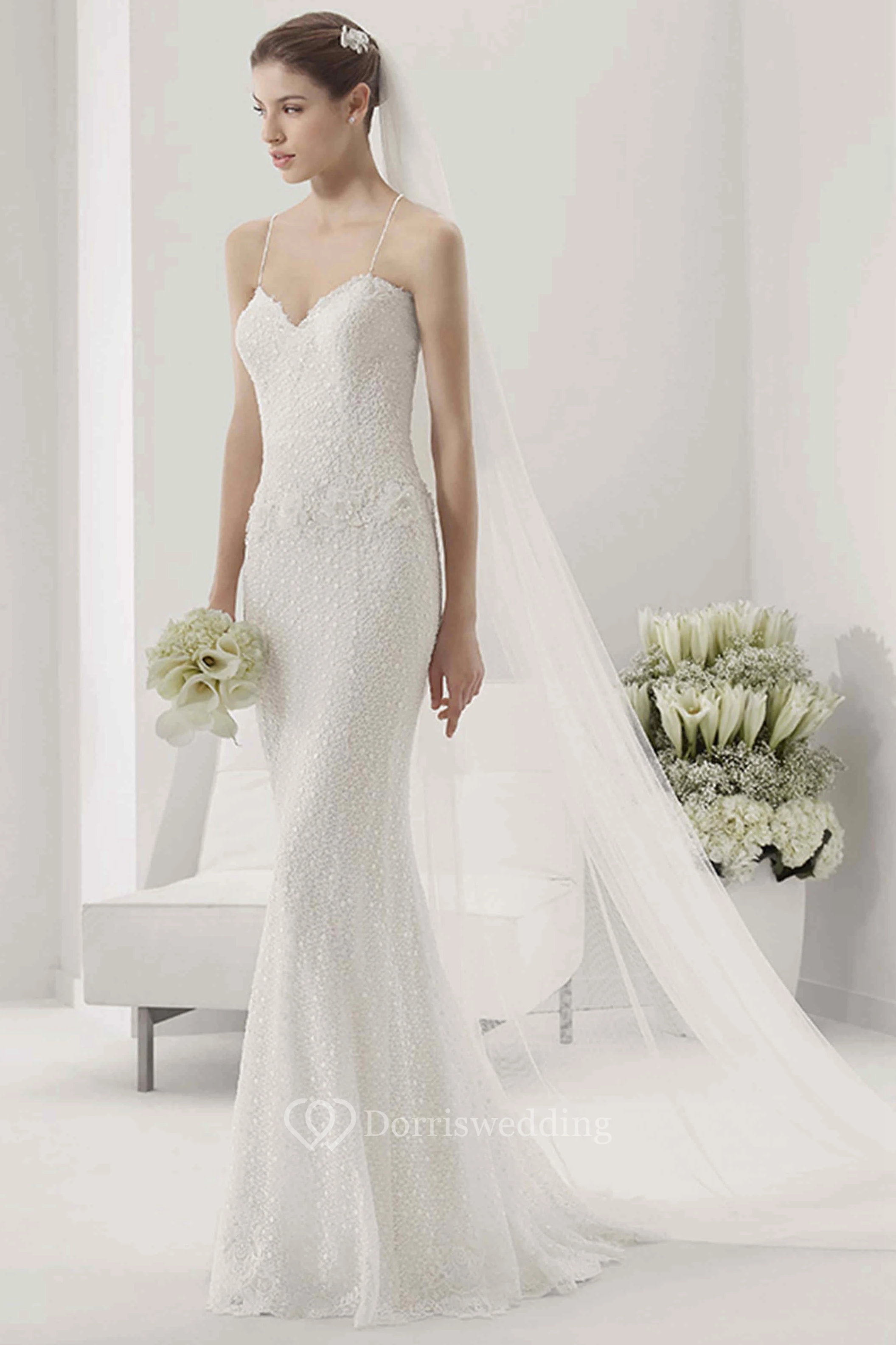 Spaghetti Straps Sweetheart Lace Gown With Waist Flower