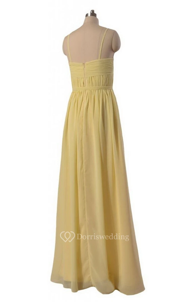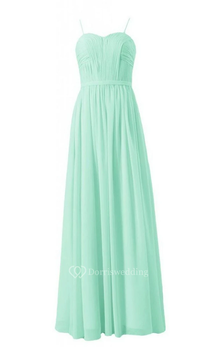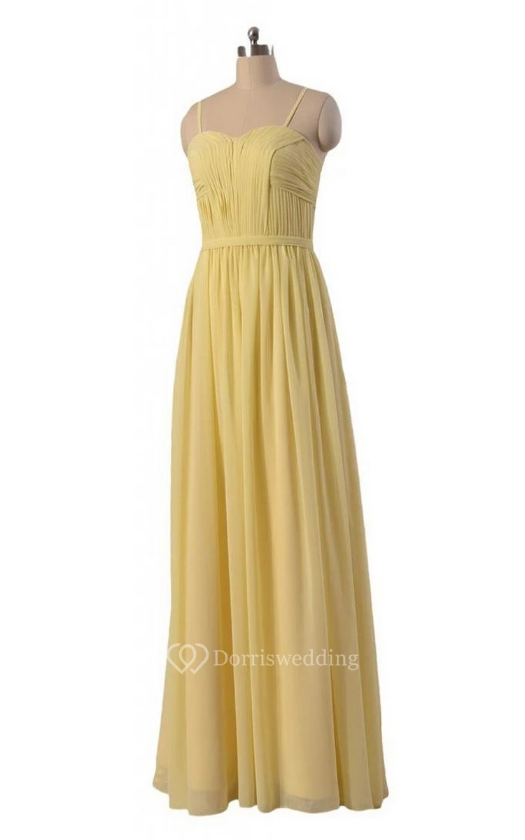 Spaghetti Straps Sweetheart Pleated A-line Gown With Band