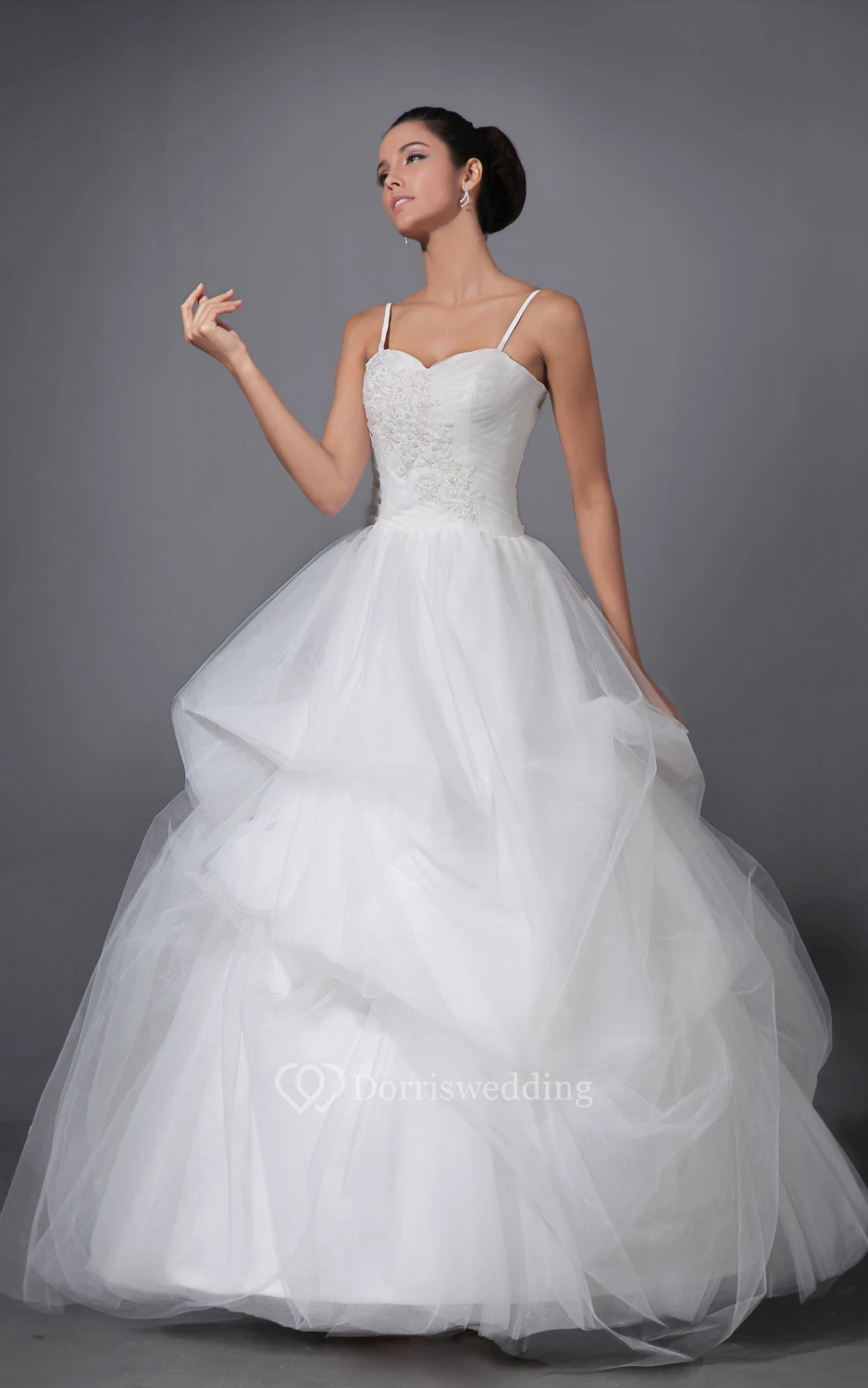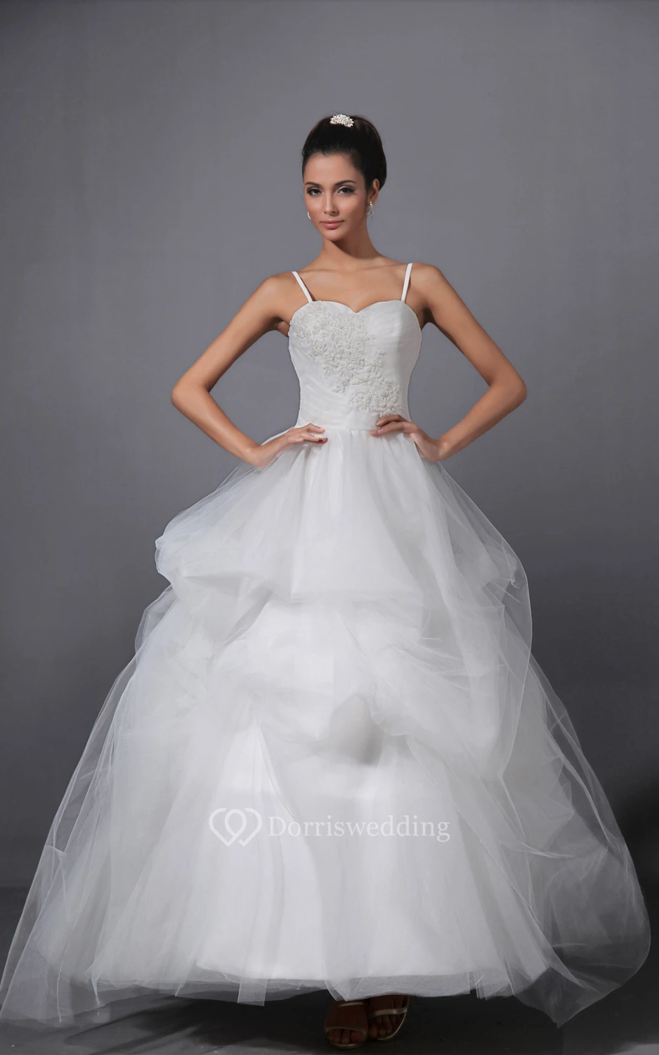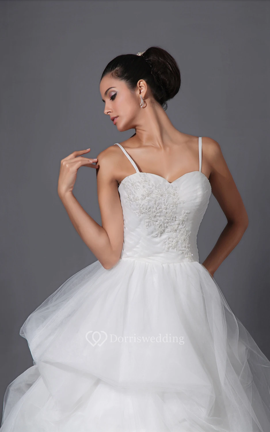 Spaghetti Straps Tiers A-Line Dress With Tulle Overlay