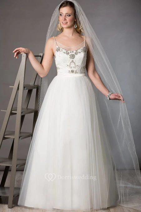 Spaghetti Straps Tulle Bridal Ball Gown With Crystal Top