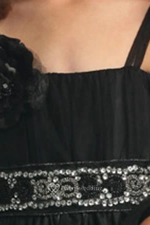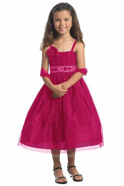 Spaghetti Tea-Length Bowed Sequins Flower Girl Dress With Cape