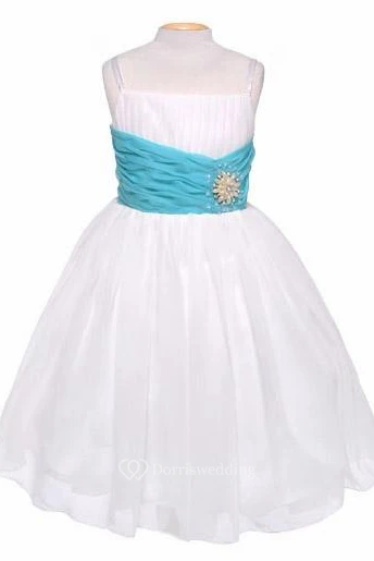 Spaghetti Tea-Length Pleated Chiffon&Sequins Flower Girl Dress With Tiers