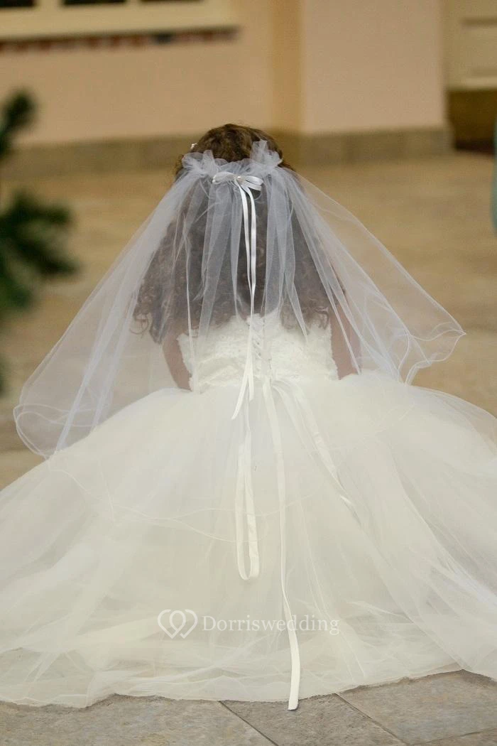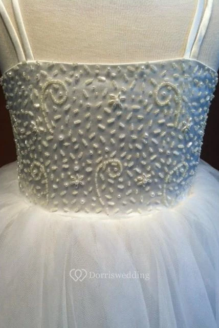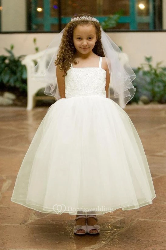 Spaghetti Tea-Length Tiered Criss-Cross Tulle&Lace Flower Girl Dress With Straps