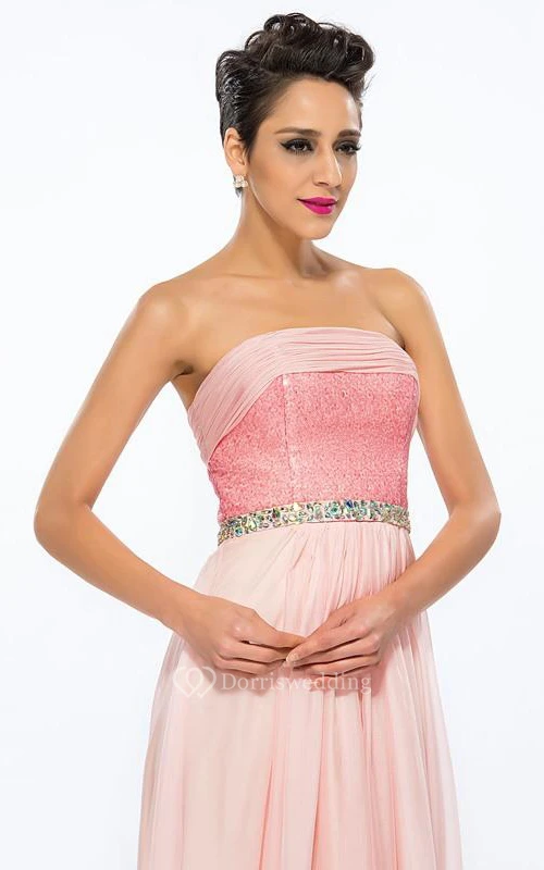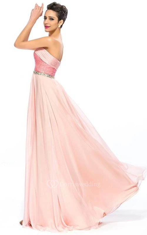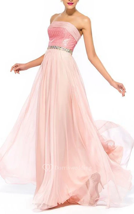 Sparking Strapless A-Line Sequins Beading Long Prom Dress