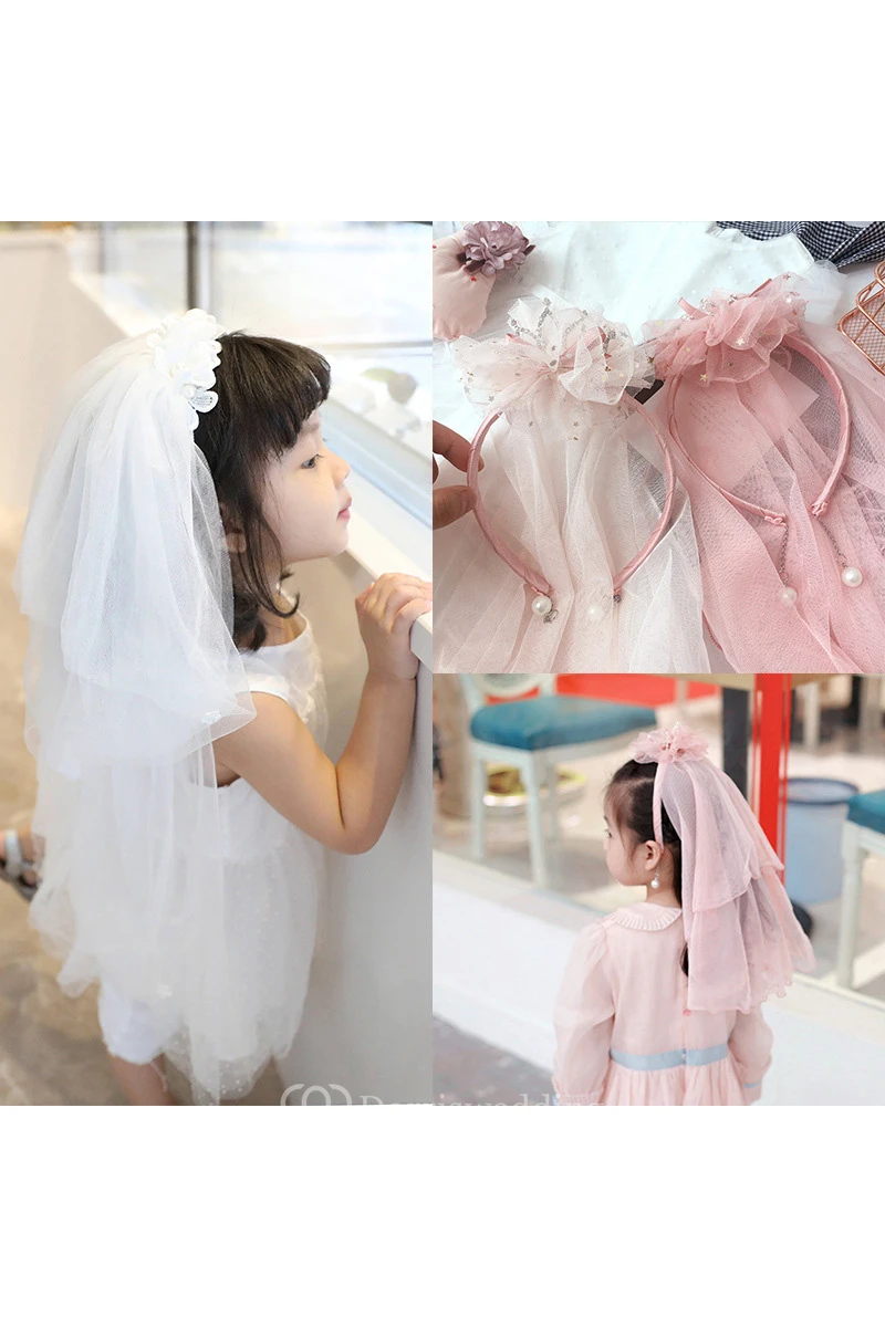 Special Diamond Pearl Crown Flower Girl Headband Tulle Veil