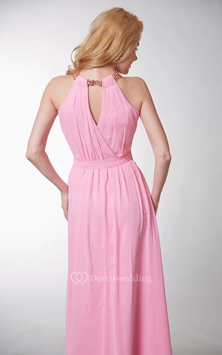 Special Halter A-line Long Chiffon Dress