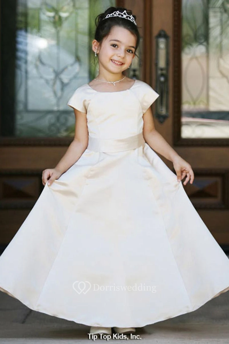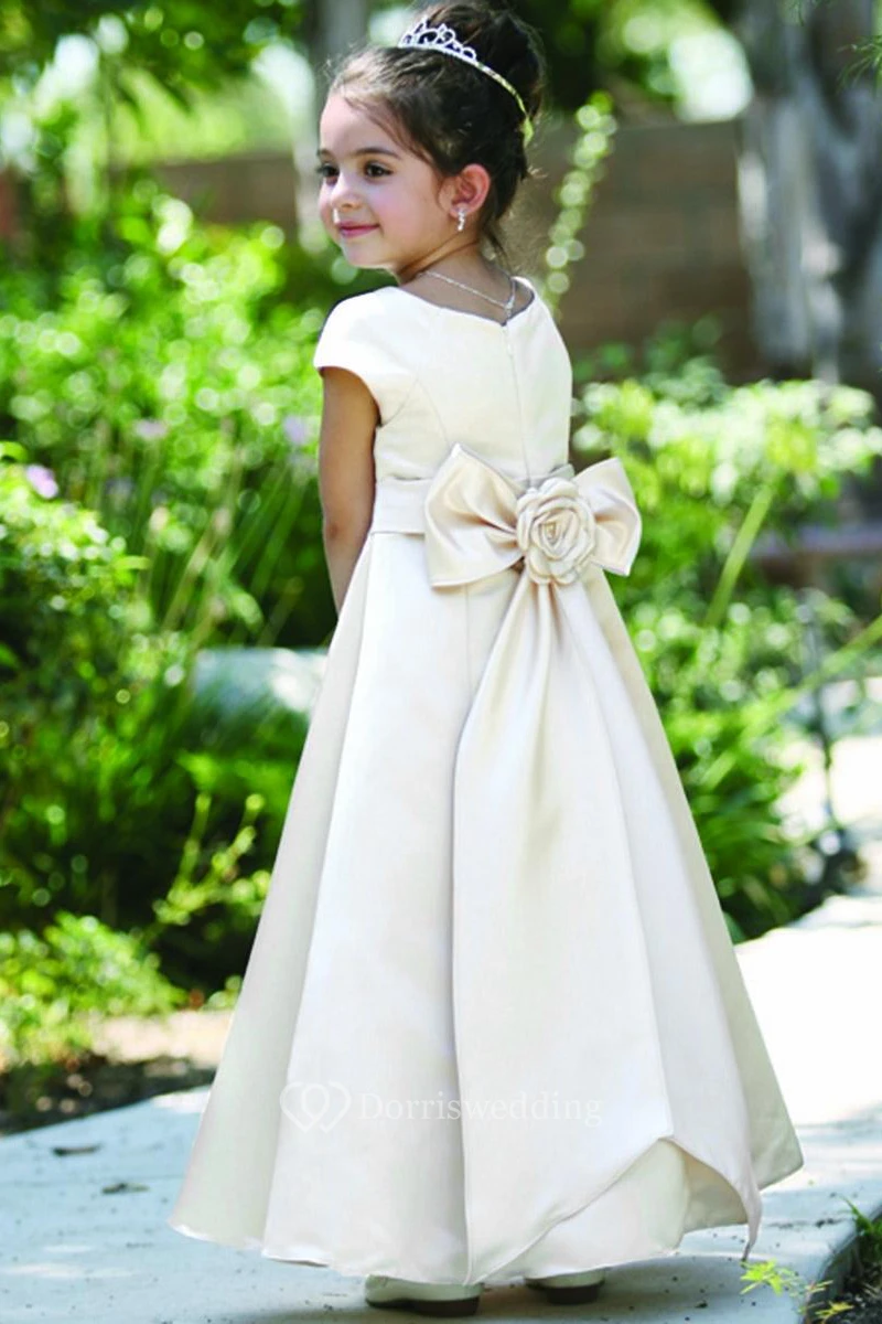 Split Long Bowed Split-Front Satin Flower Girl Dress With Sash