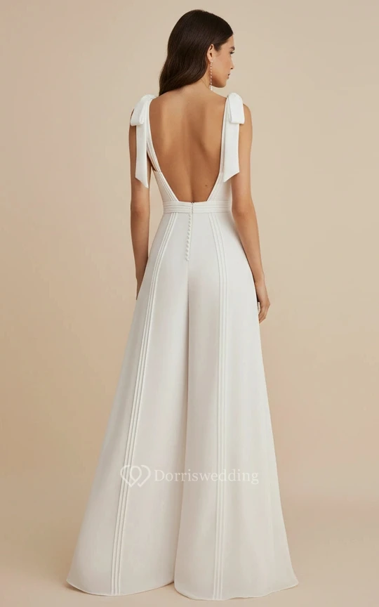Square Neck Bow Shoulder Wide Leg Wedding Jumpsuit