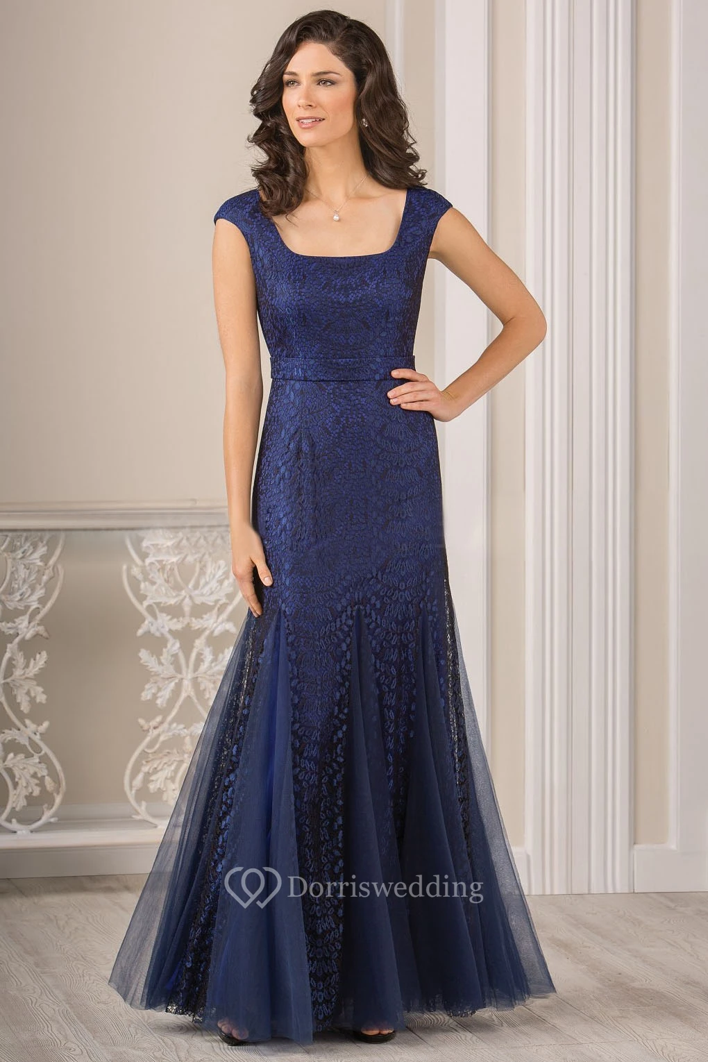 Square-Neck Cap-Sleeved Mermaid Mother Of The Bride Dress With Appliques