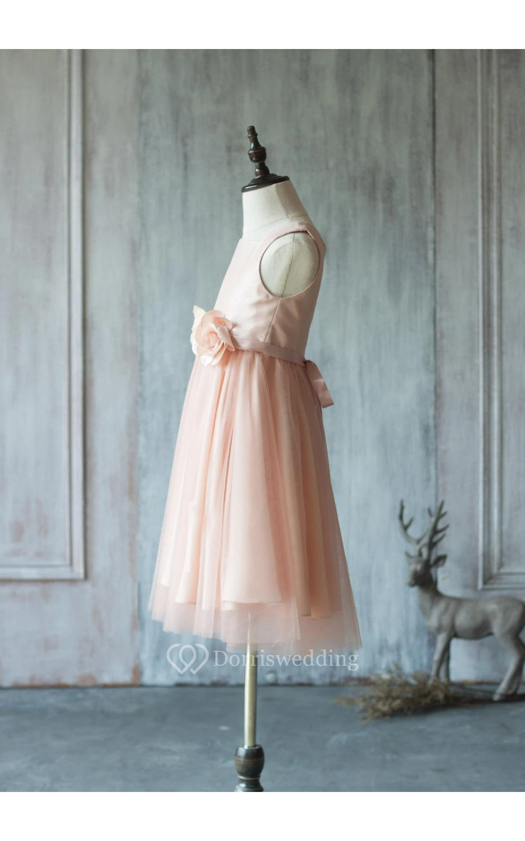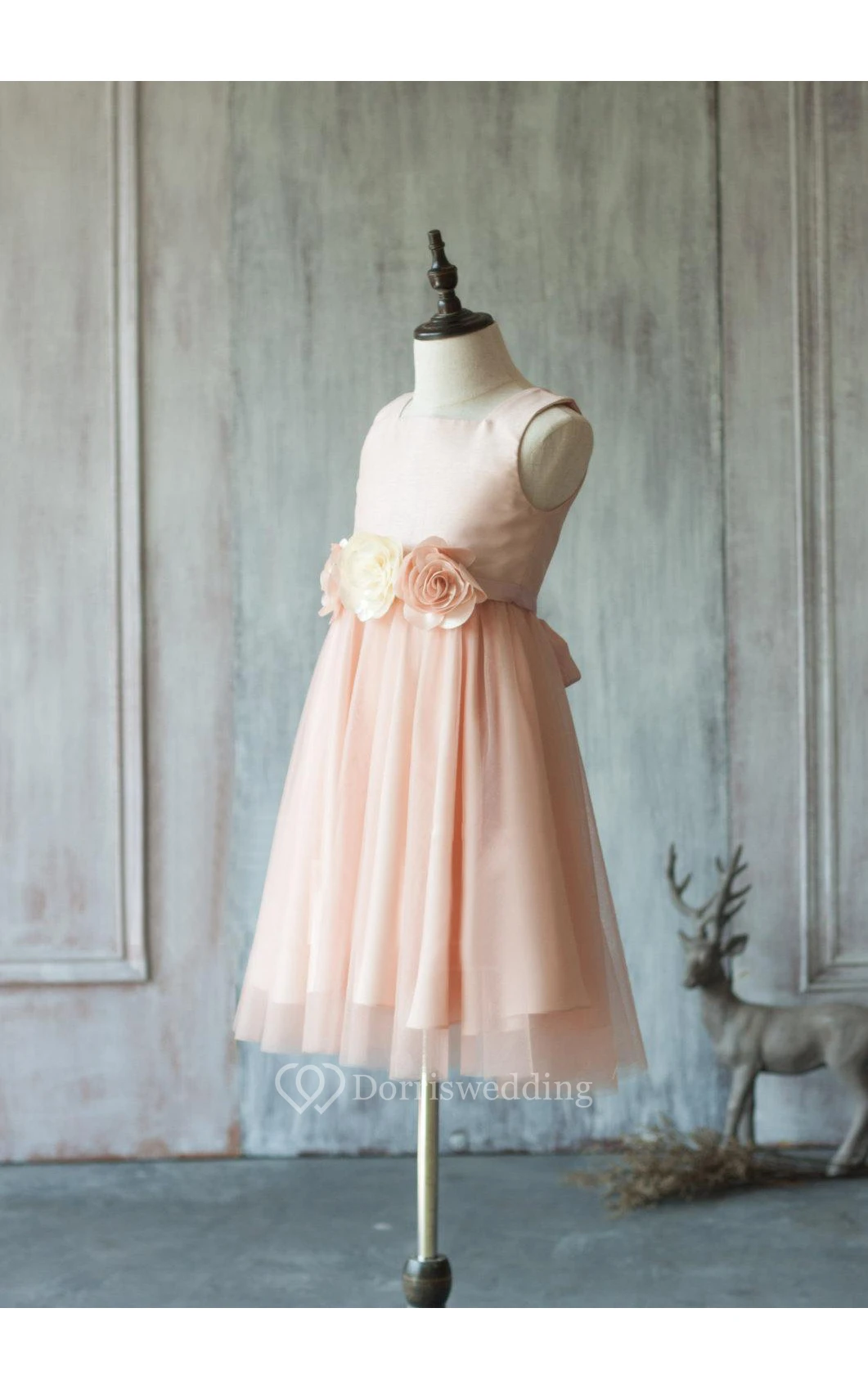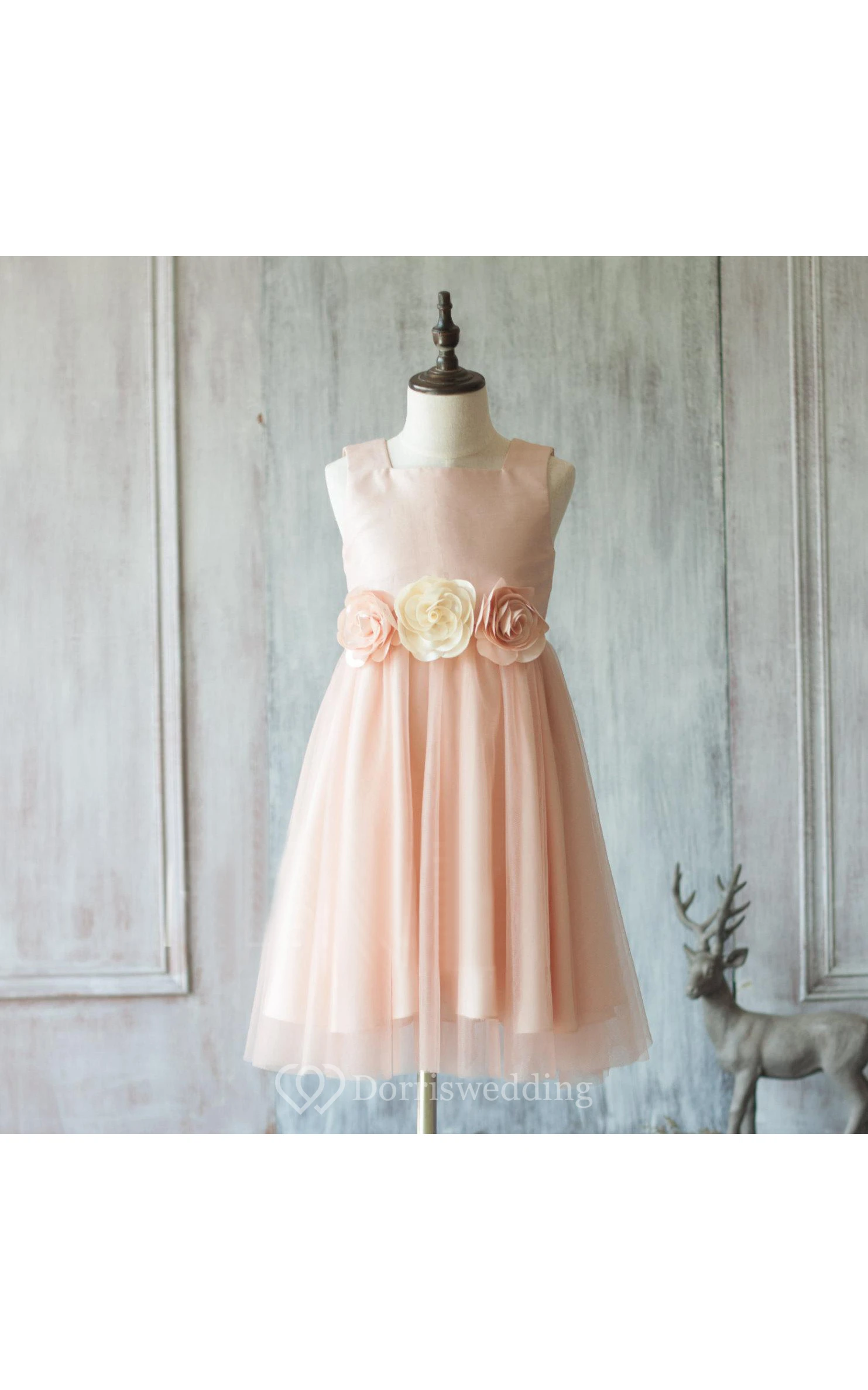 Square Neckline Sleeveless Pleated A-line Tulle Long Dress With Flowers