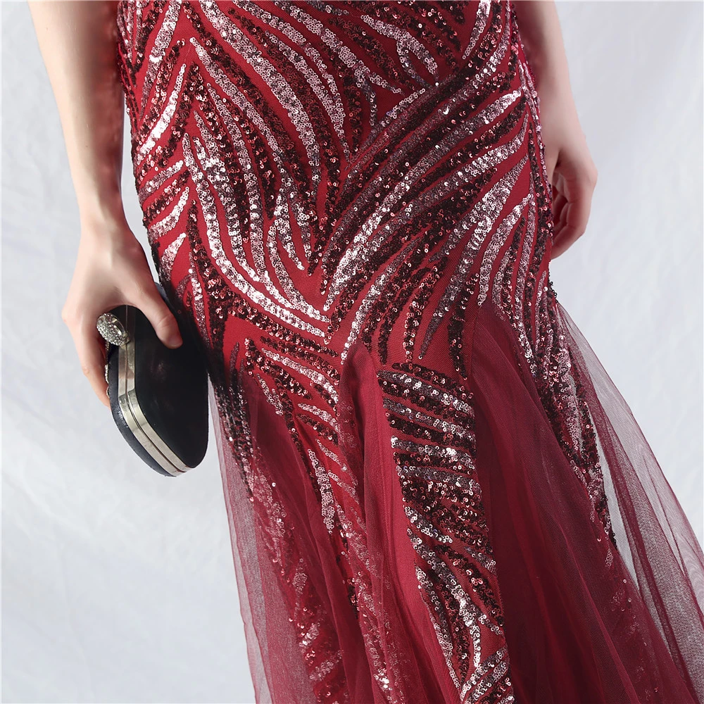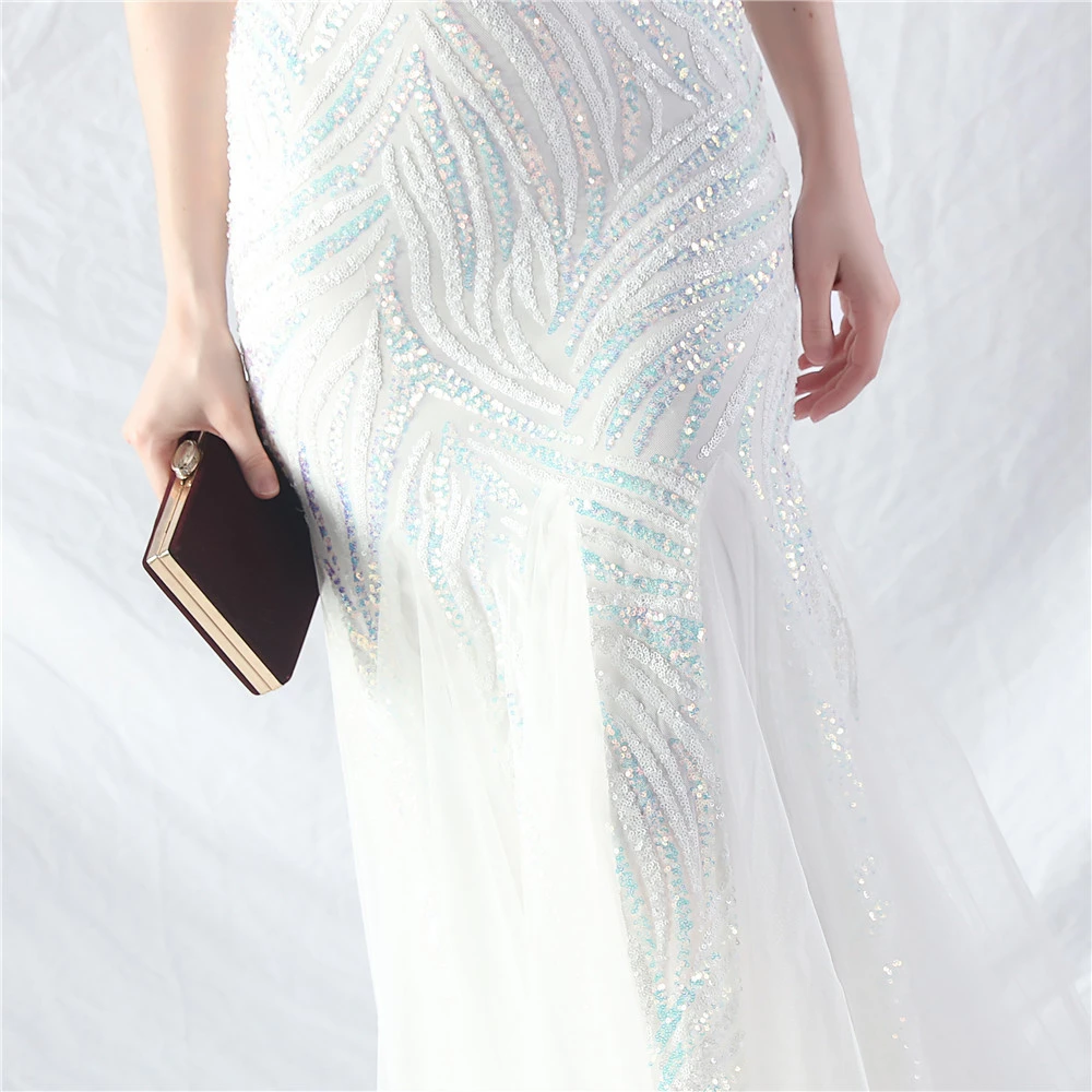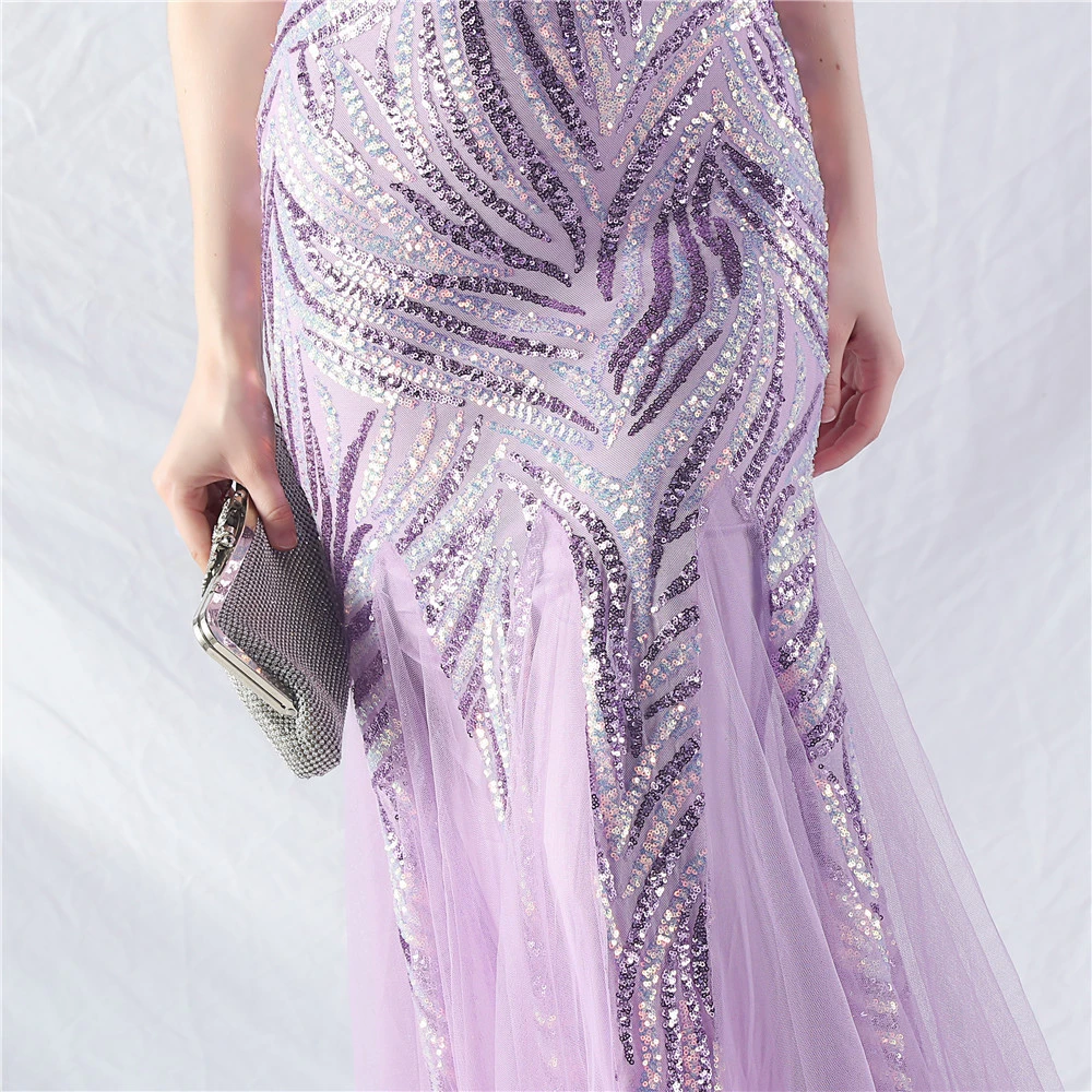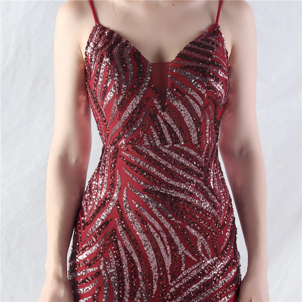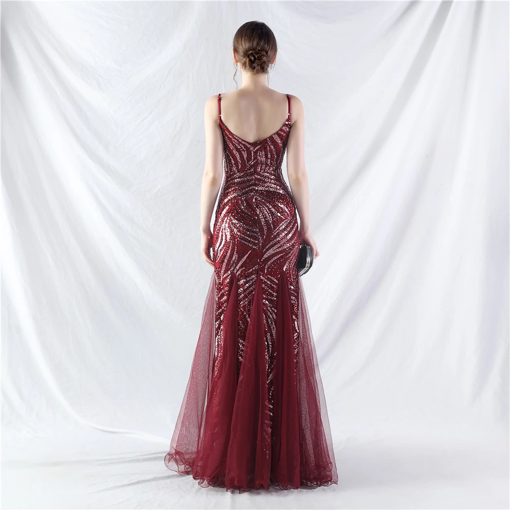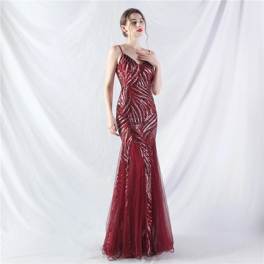 Stacked Sequins Splicing Mesh Gauze Sling Evening Dress