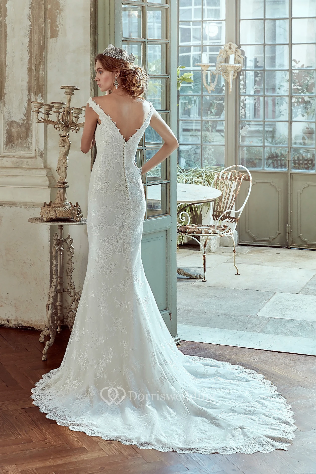 Strap-Neck Sheath Wedding Dress With Low-V Back and Court Train