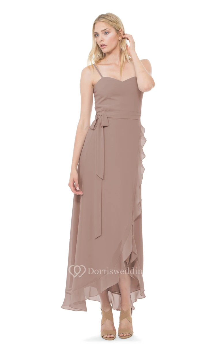 Strap Unique Spaghetti Dress With Ruffles