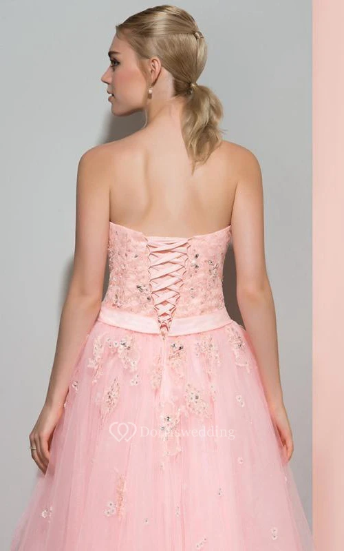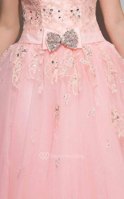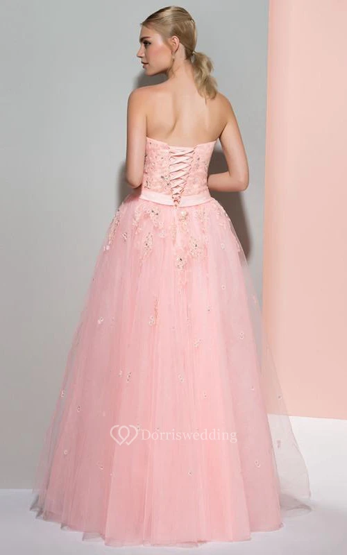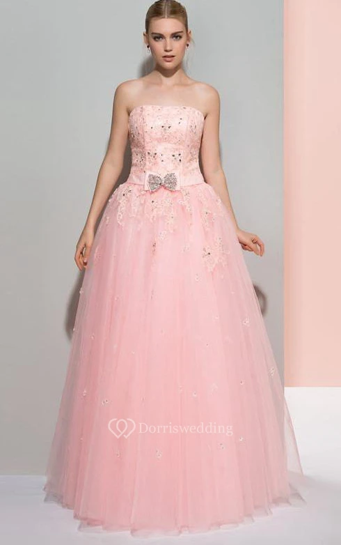 Strapless A-Line Appliques Beading Bowknot Long Prom Dress