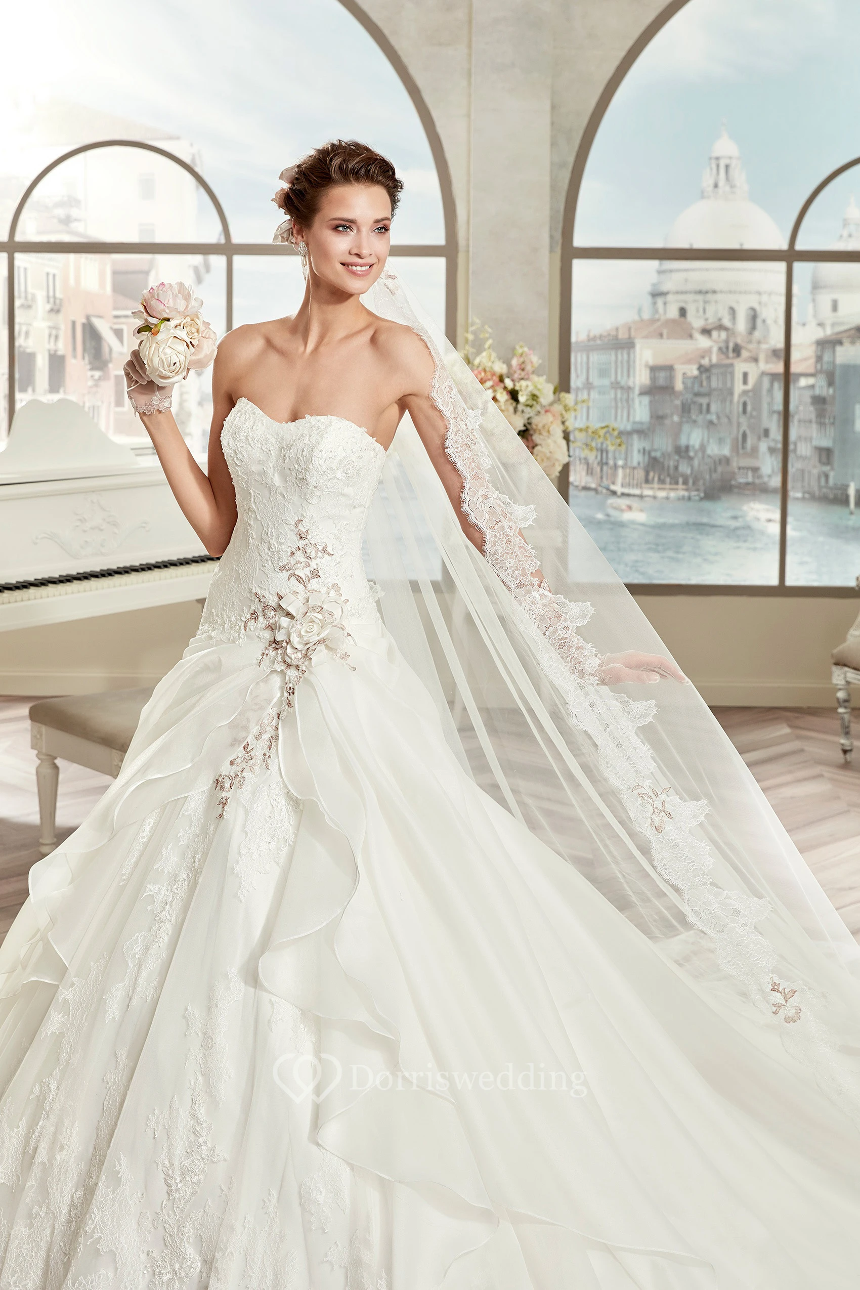 • Embellishments: Appliques, Flower(s), Draping