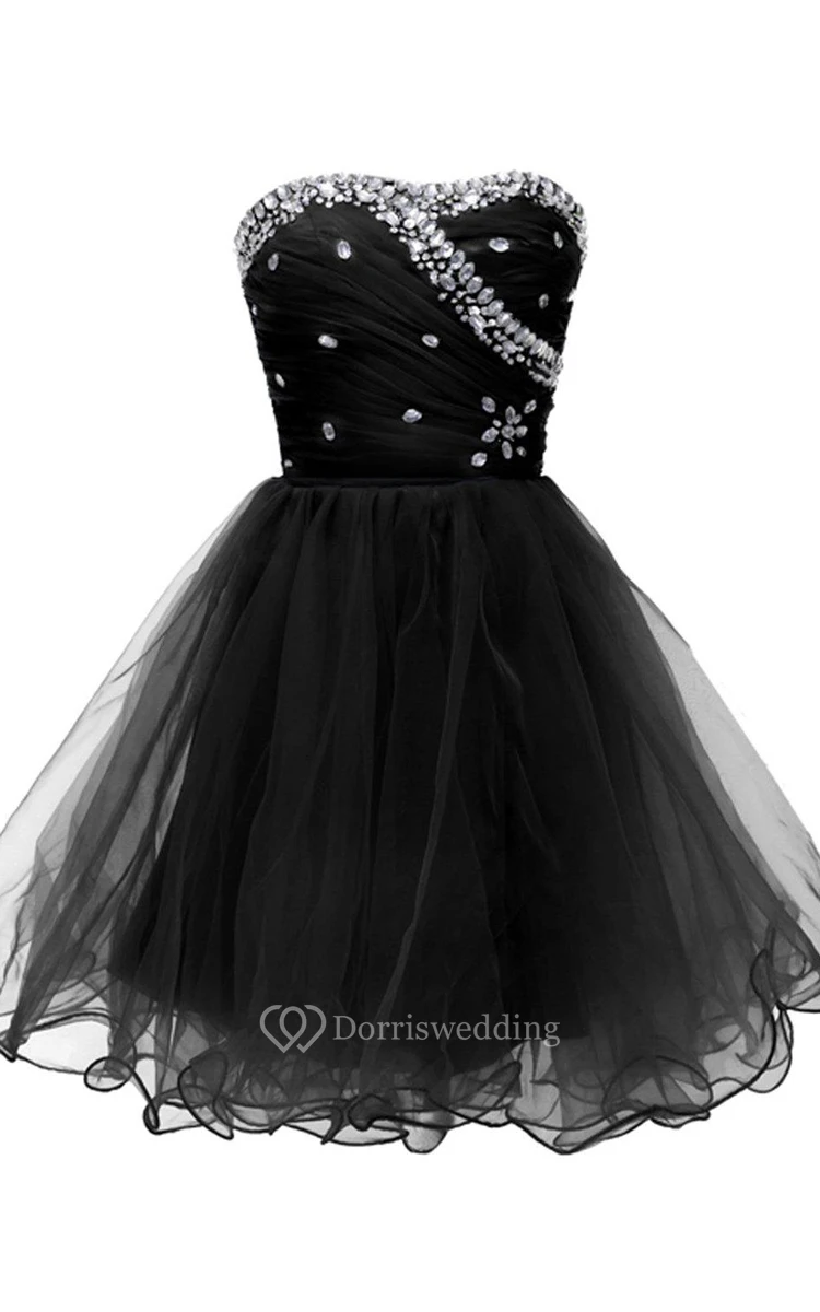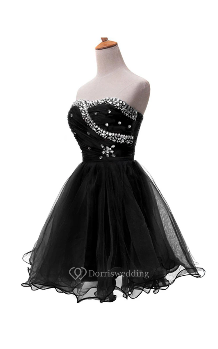Strapless A-line Dress With Rhinestone Bodice