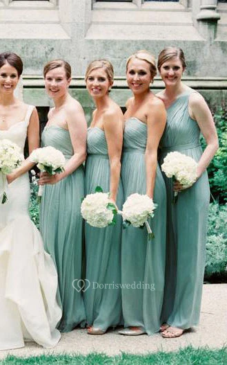 Strapless A-line Floor-length Pleated Chiffon Dress
