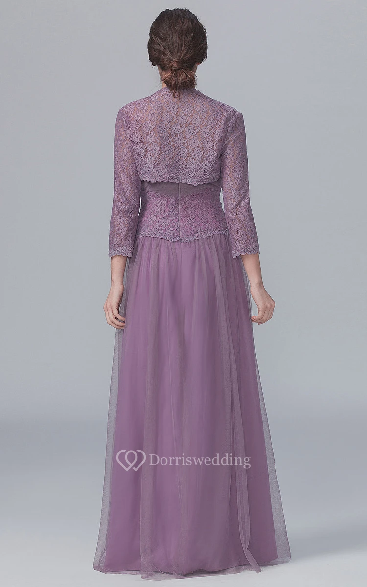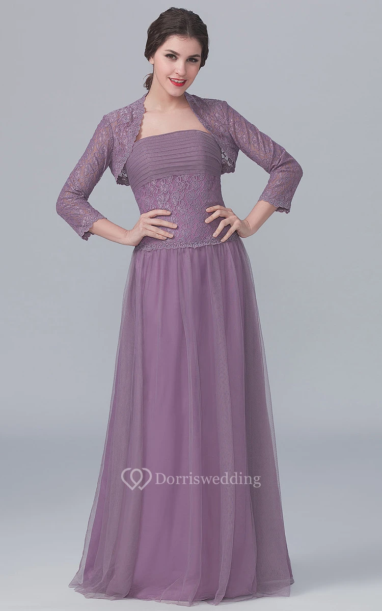 Strapless A-Line Gown With 3-4-Sleeved Lace Jacket