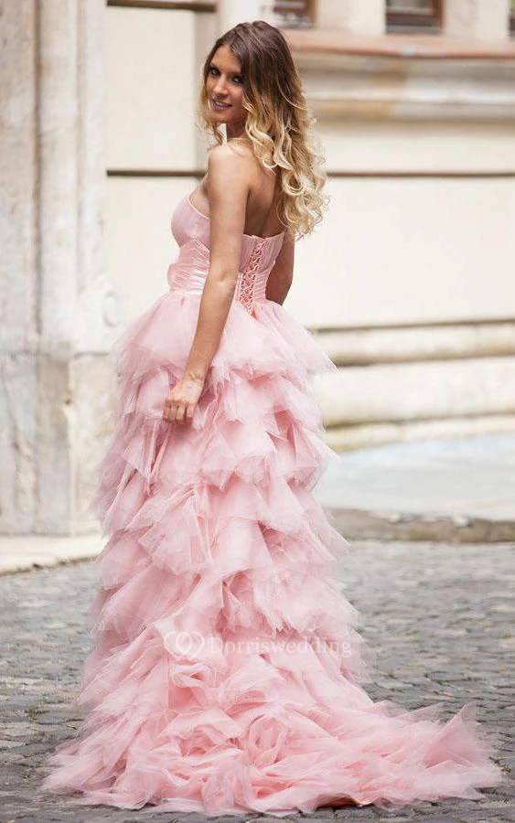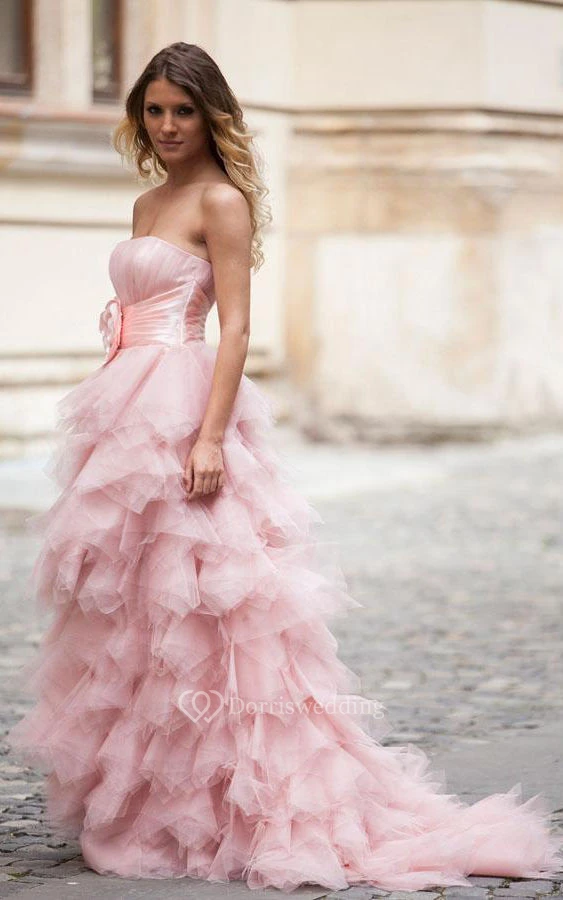 Strapless A-line Gown with Ruffles and Flower