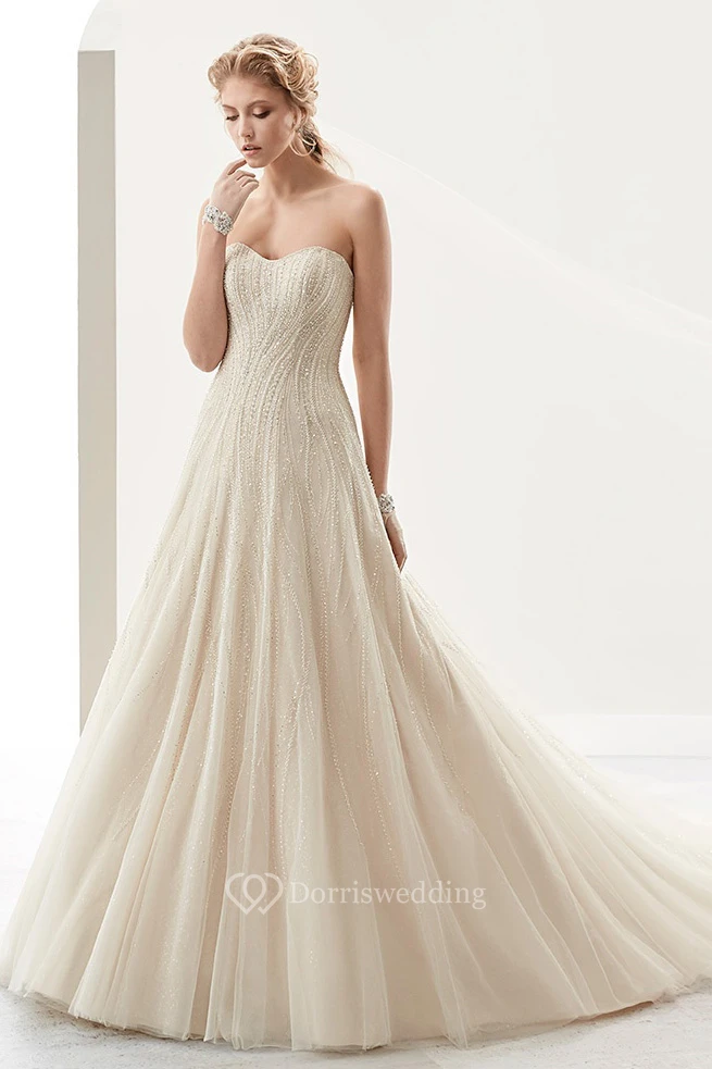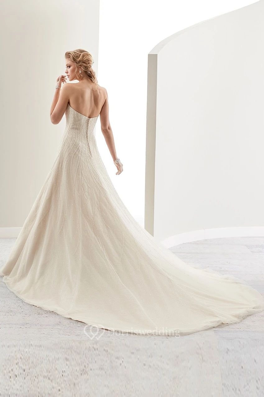 Strapless A-Line Lace Bridal Gown With Sequins And Brush Train