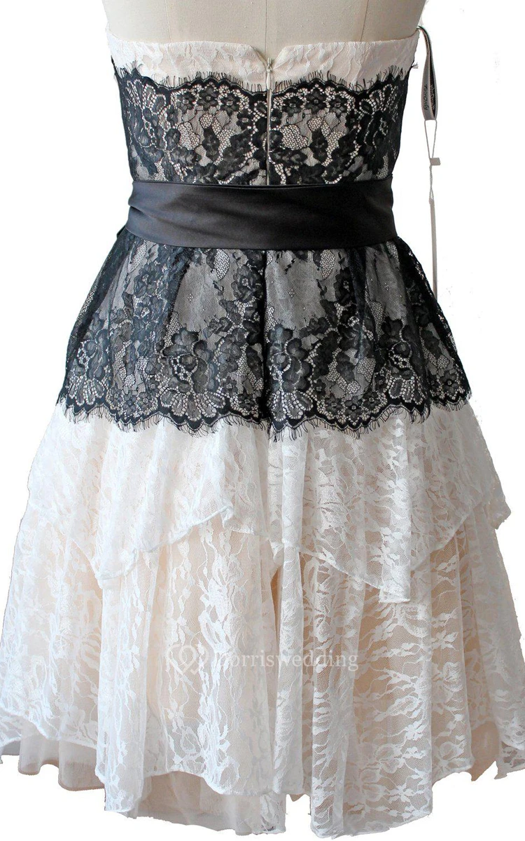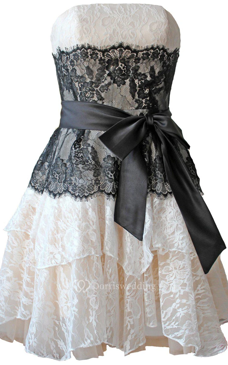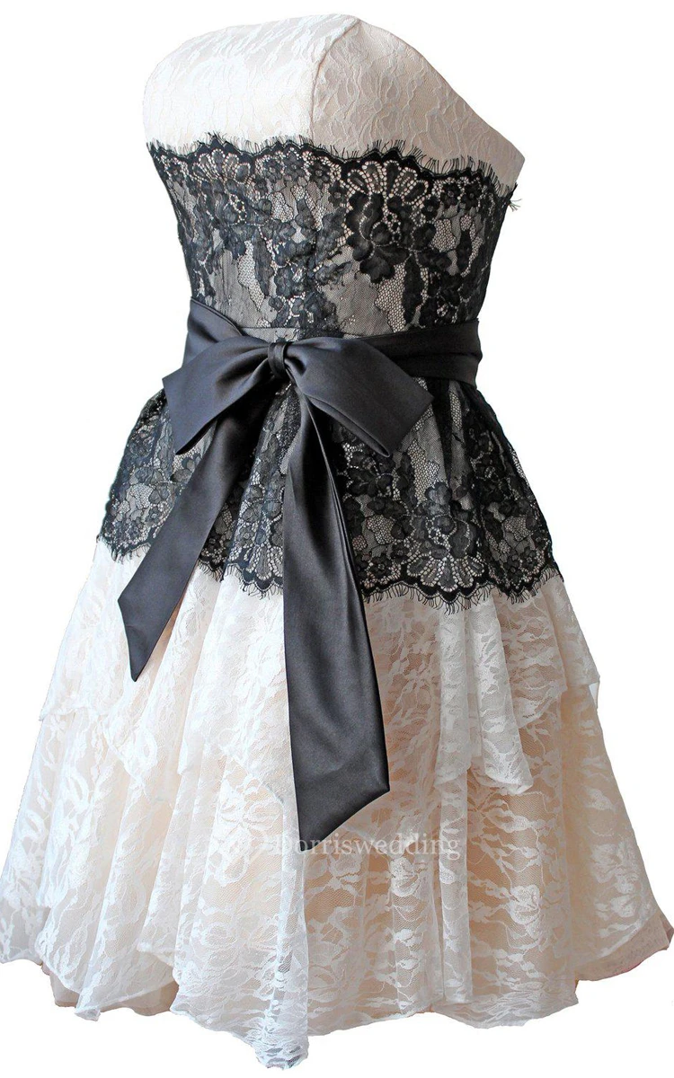 Strapless A-line Lace Mini Dress With Bow Tie