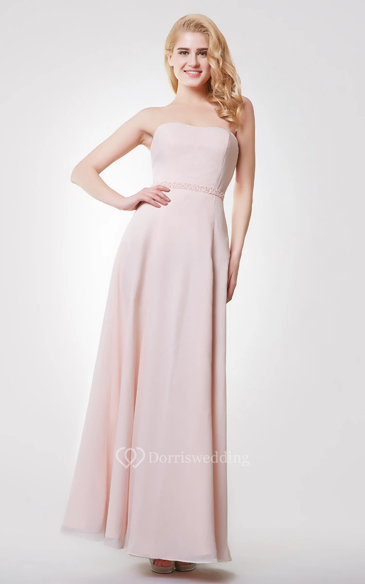 Strapless A-line Long Chiffon Dress With Removable Wrap