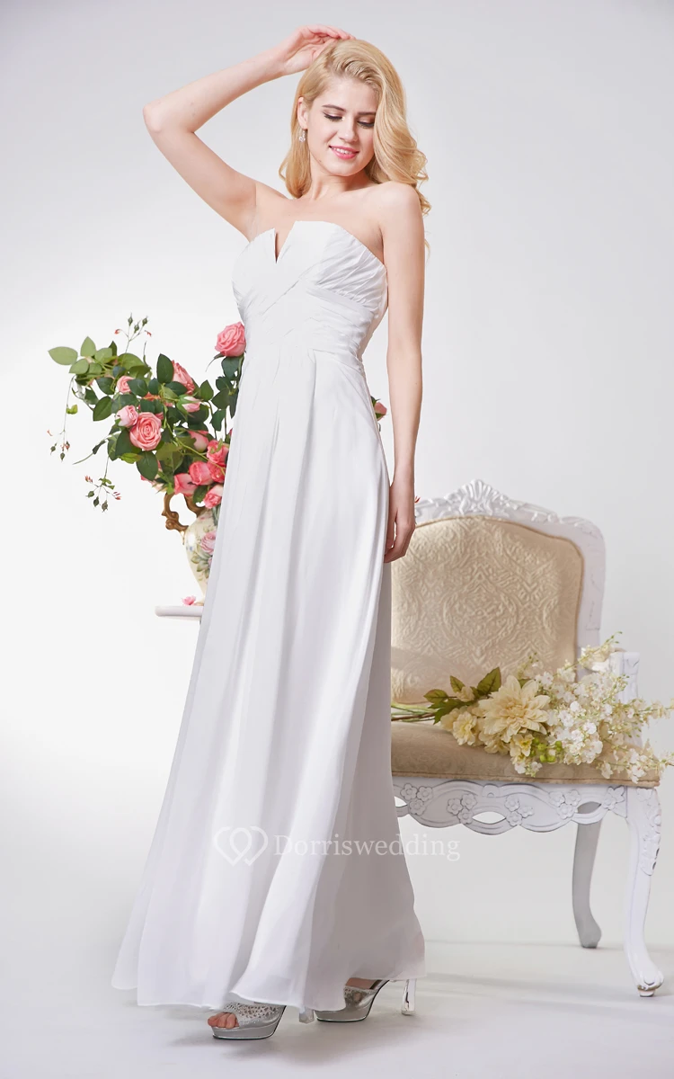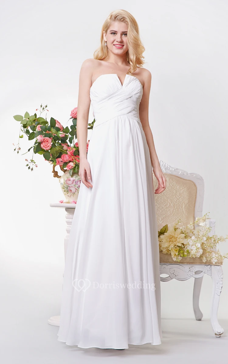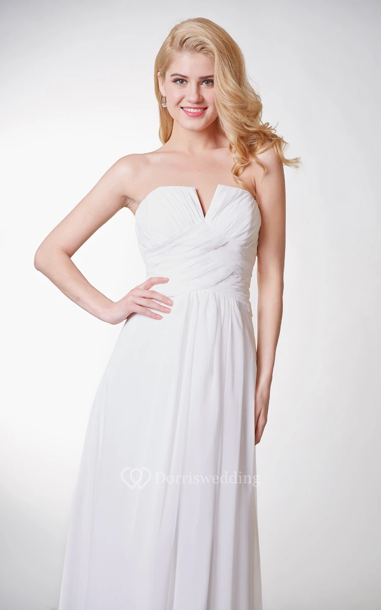 Strapless A-line Long Chiffon Dress With Ruching