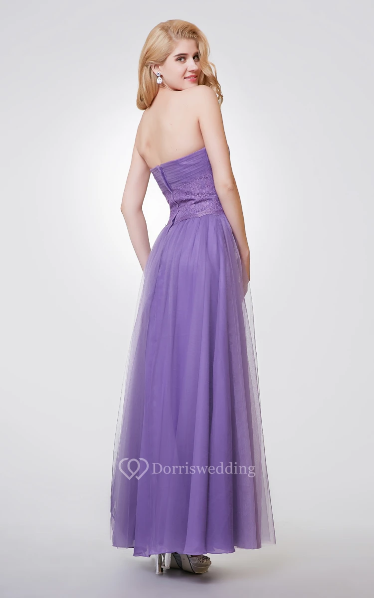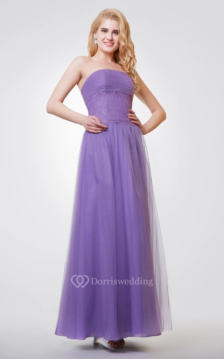 Strapless A-line Long Ruched Chiffon and Lace Dress