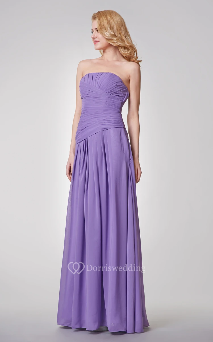 Strapless A-line Long Ruched Chiffon Dress With Pleats
