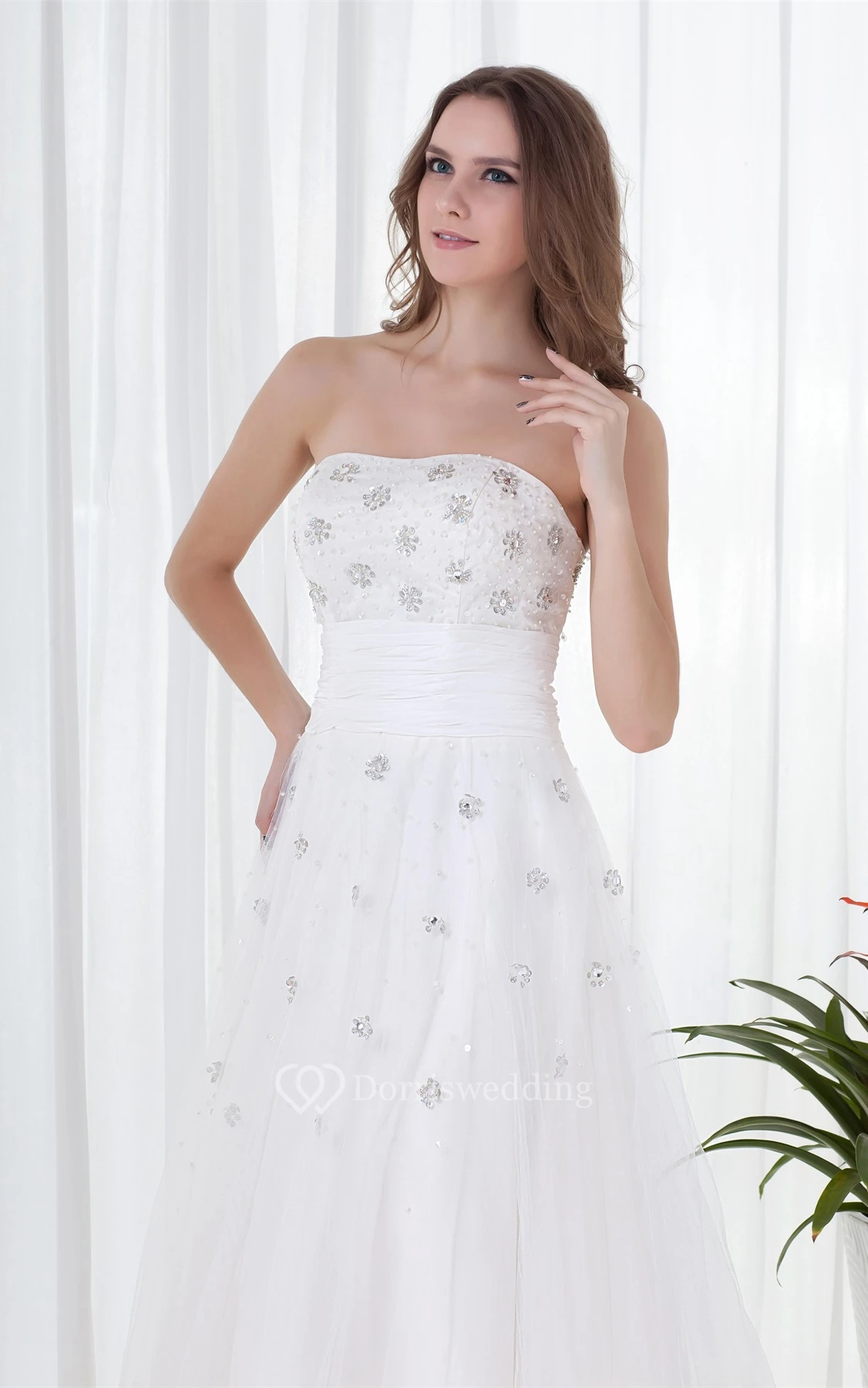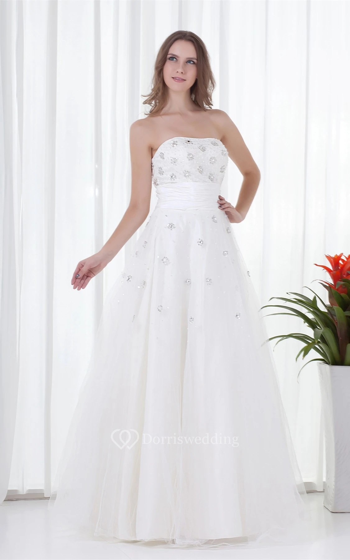 Strapless A-Line Tulle Gown With Crystal Detailing