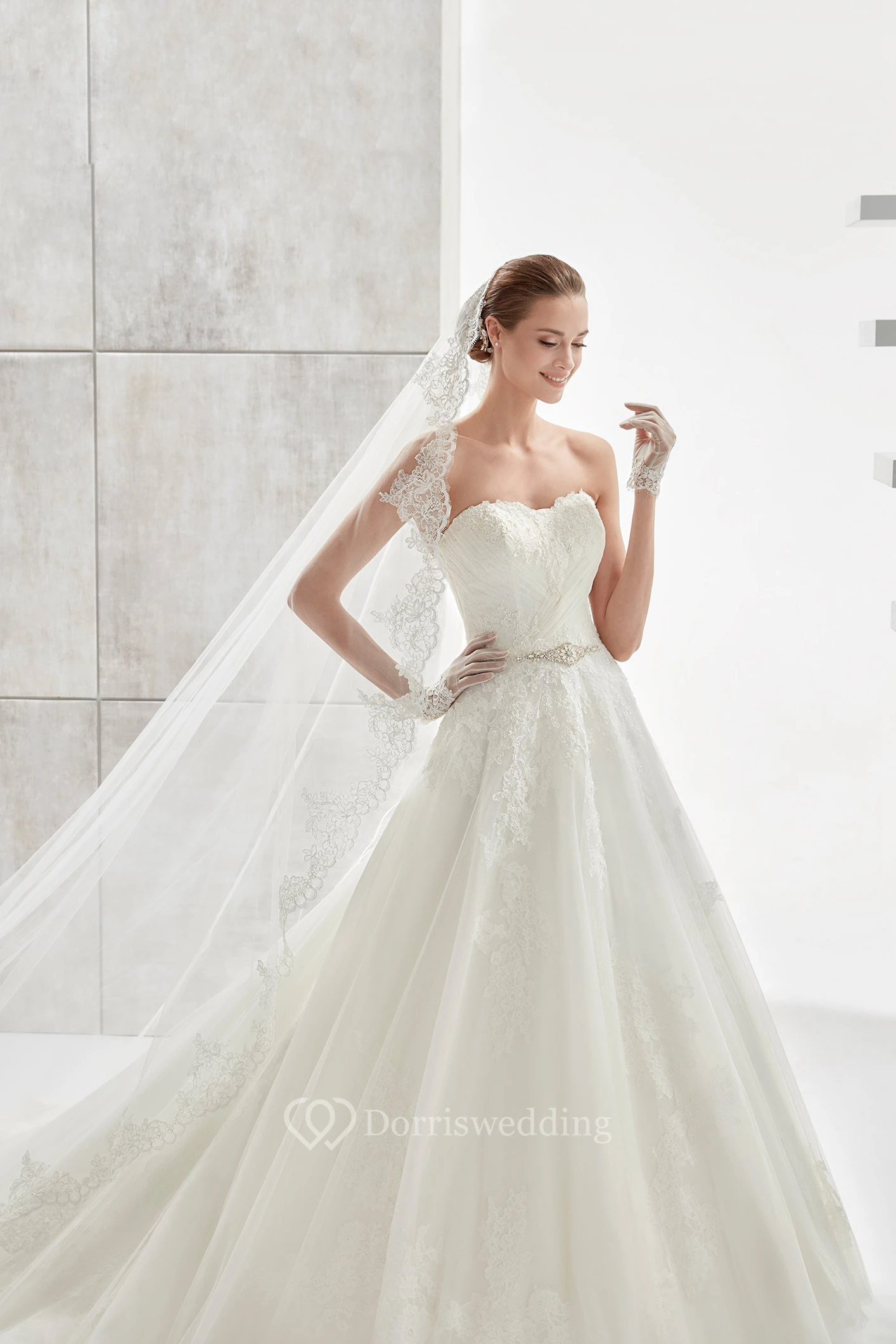 Strapless A-line Wedding Dress With Beaded Belt and Lace-up Back