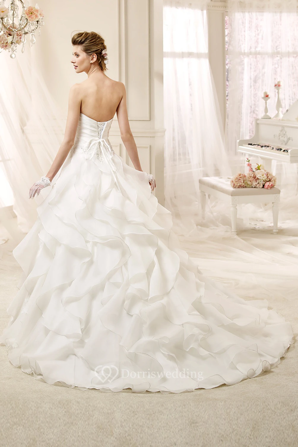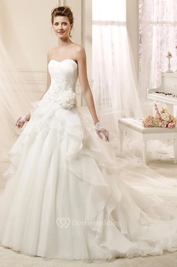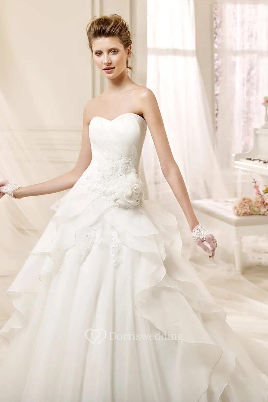 Strapless A-line Wedding Dress with Flowers and Ruffles