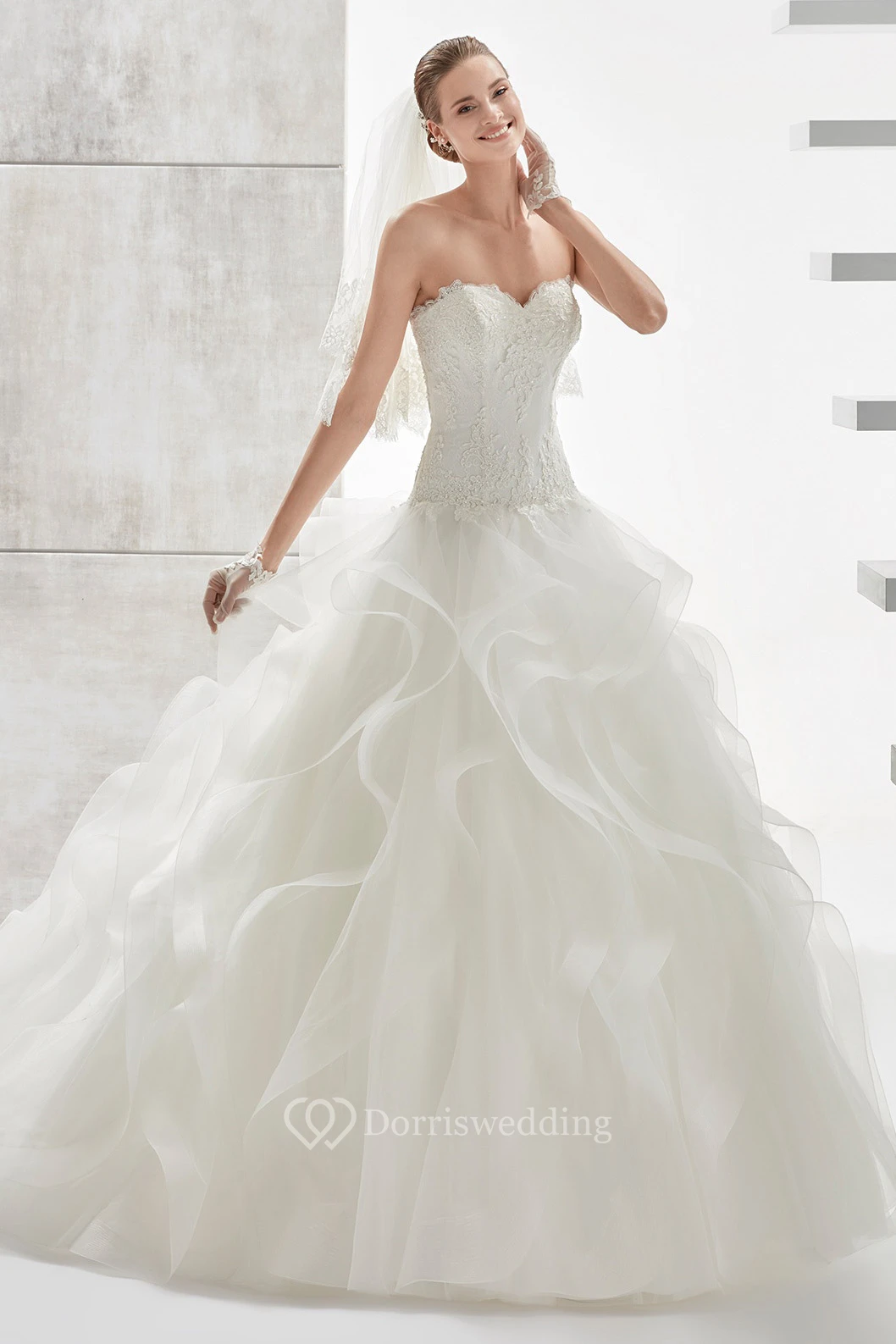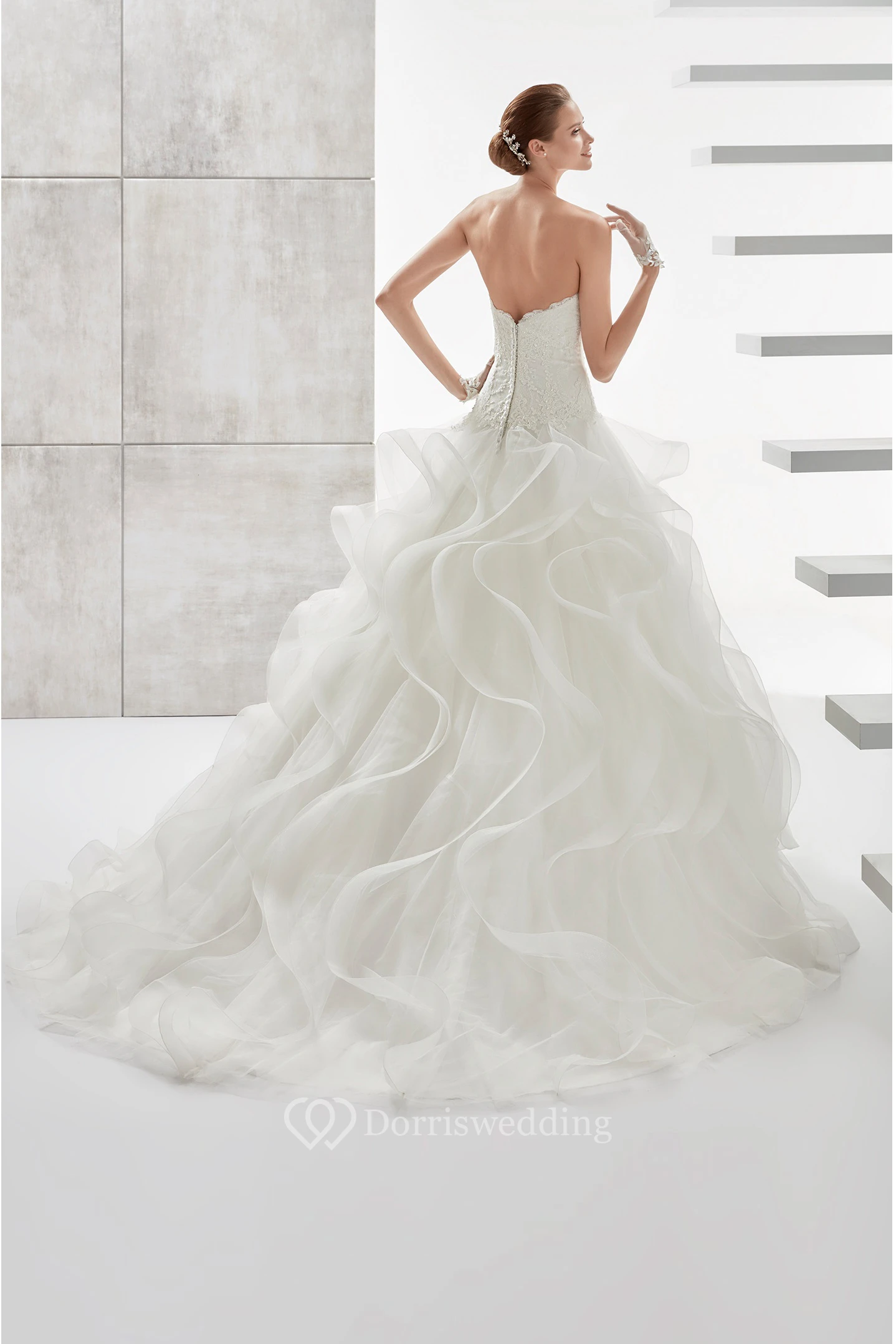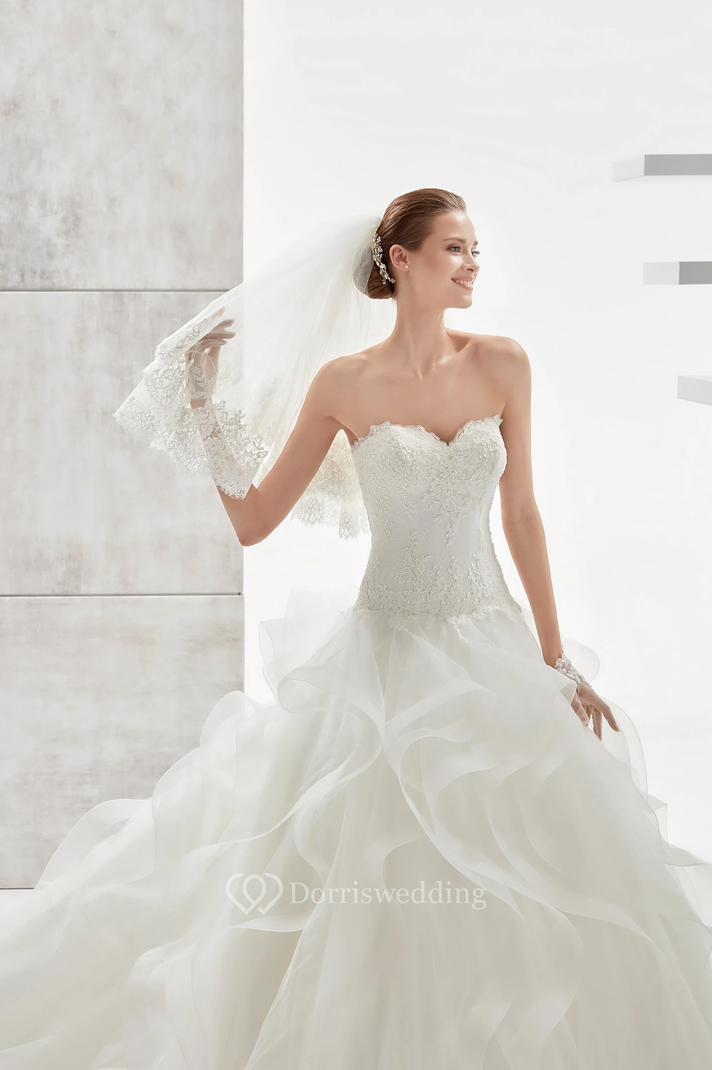 Strapless A-line Wedding Dress with Lace Corset and Cascading Ruffles
